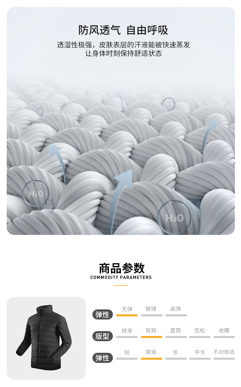外层采用整块高针织通道布料,立体无缝剪裁,能有效避免羽绒钻绒,高效防风保暖。简单立领,弹力袖口和下摆,两侧是隐形口袋,配细拉链,实用好看。
