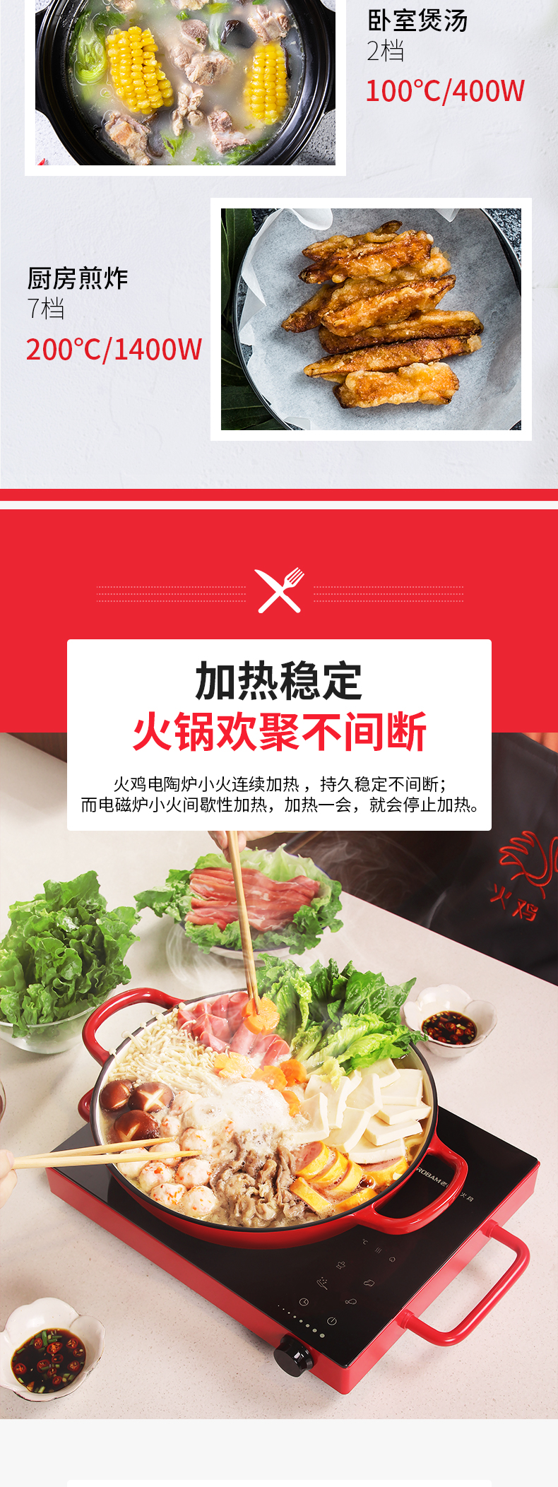天猫火鸡电器旗舰店399元,可领160元优惠券,实付239元到手,不挑锅具的电陶炉,兼容炒锅、砂锅、康宁锅、珐琅锅、蒸锅、锡纸等多个锅具,两边U型把手,拎上就能走,设计人性化,11档功率可调,蒸煮煎炸炒都能做,无高频辐射,安全放心。