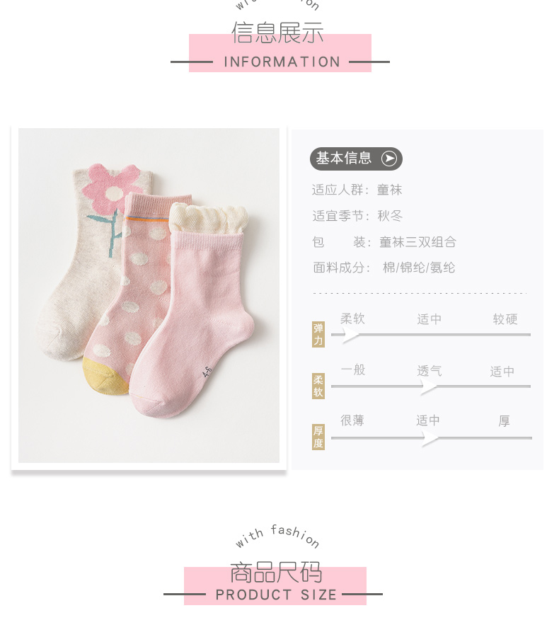 这款CARAMELLA秋冬宝宝加厚中筒袜,规格:6双 ,采用62%棉+35%聚酯纤维+3%氨纶混纺面料制作,具有较好的弹性,透气吸湿,仿手工缝头,平滑不搁脚,不易破损,更加牢固;活性印染,不易褪色;多种花色可选,每天换一种心情。
