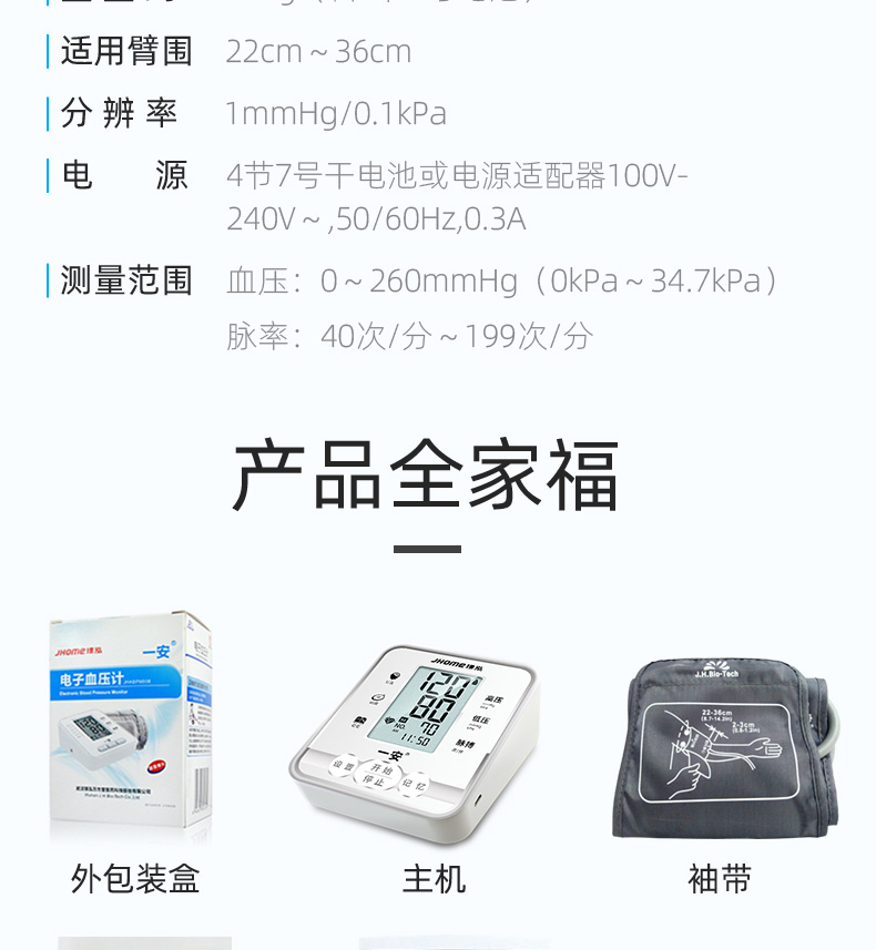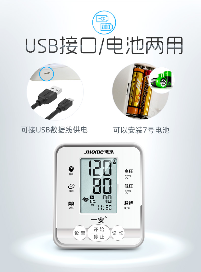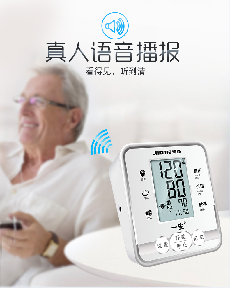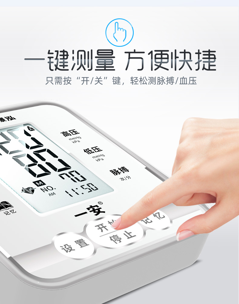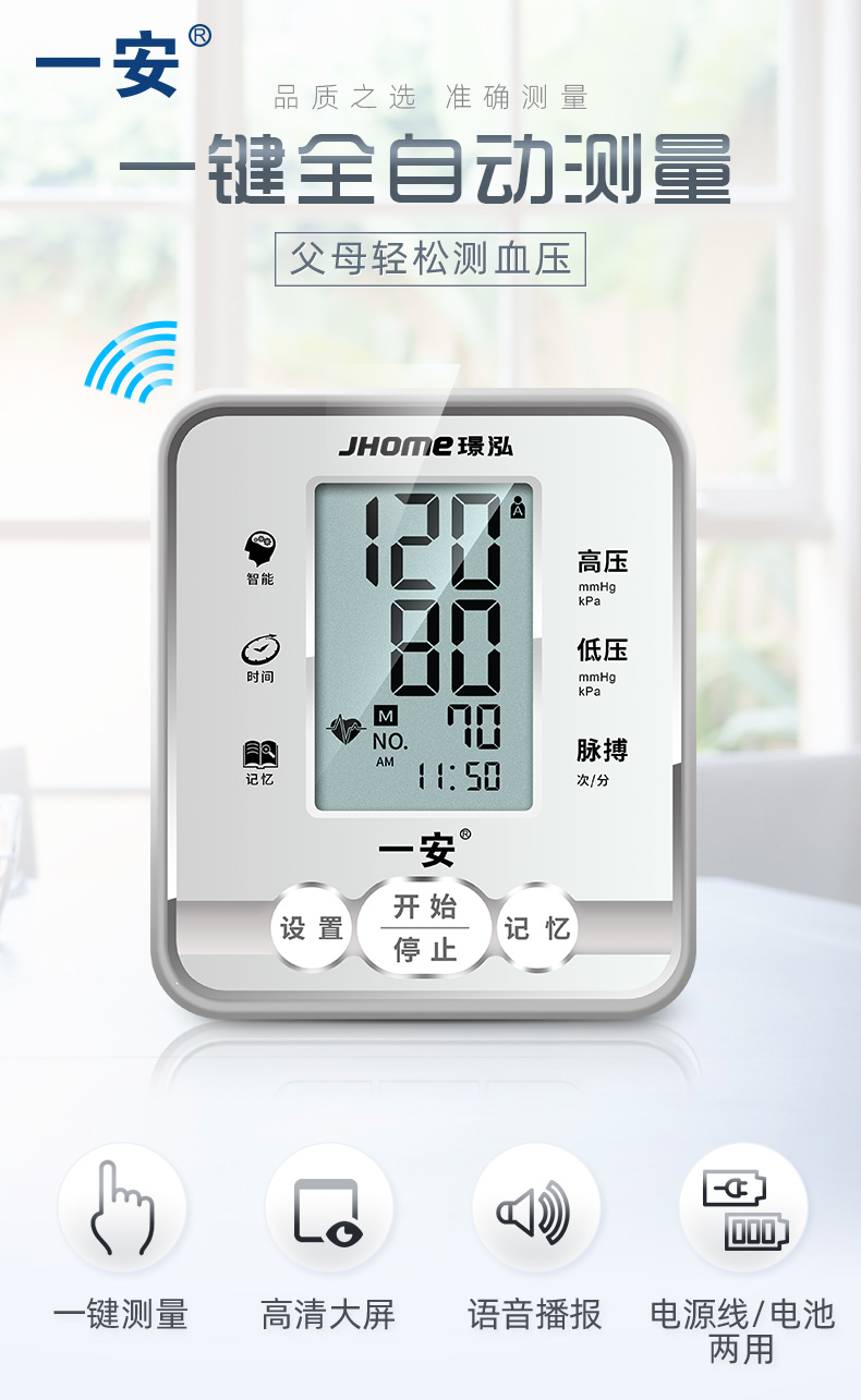 这款一安 家用上臂式全自动 语音电子血压计,智能语音播报、清晰大屏、双人90组记忆存储、测血压心率、2种电源适配、设置时间提醒。