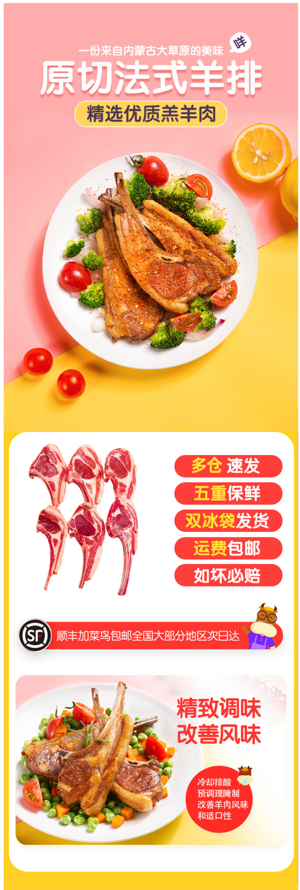 这款小牛凯西的战斧羊排,来自内蒙古放养小羔羊的肋骨,由经验丰富的老师傅去膜修筋、整块切下,肉大骨少,肥瘦相间,肉质细嫩有弹性,油脂和肉的比例恰到好处,不管是煎还是烤肉质都非常的嫩。