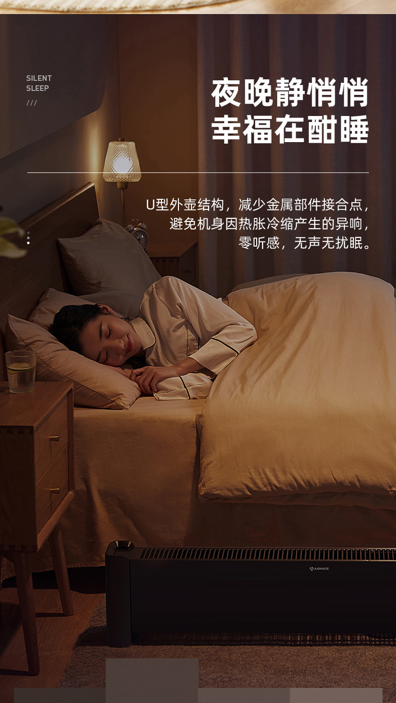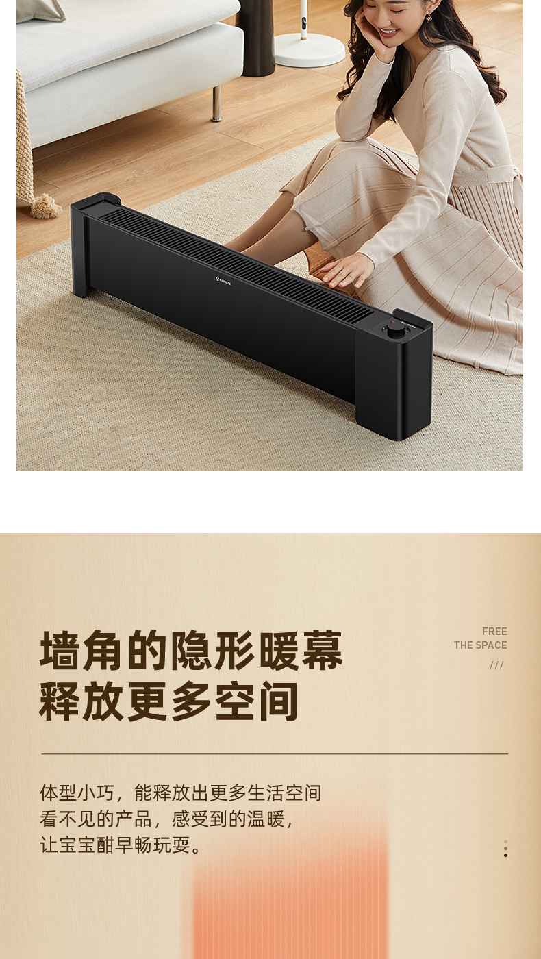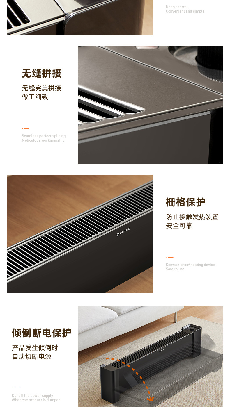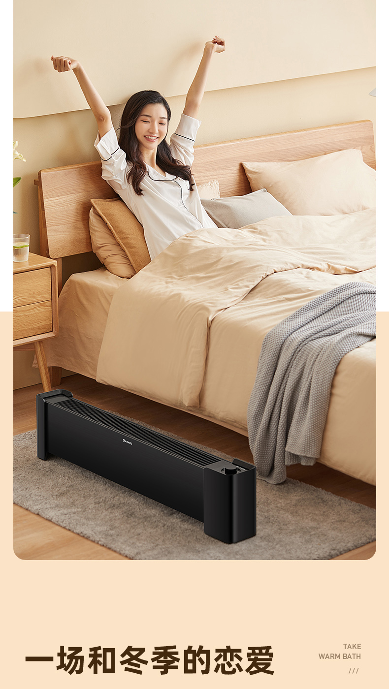 艾美特出品的移动式地暖,从下往上热气流立体循环,2200w超大热量,整屋升温。新型合金发热体,无光无声无风感,升温不干燥,113片大热量,3s速热 。具备安全童锁、倾倒自动断电、过热保护等安全防护。