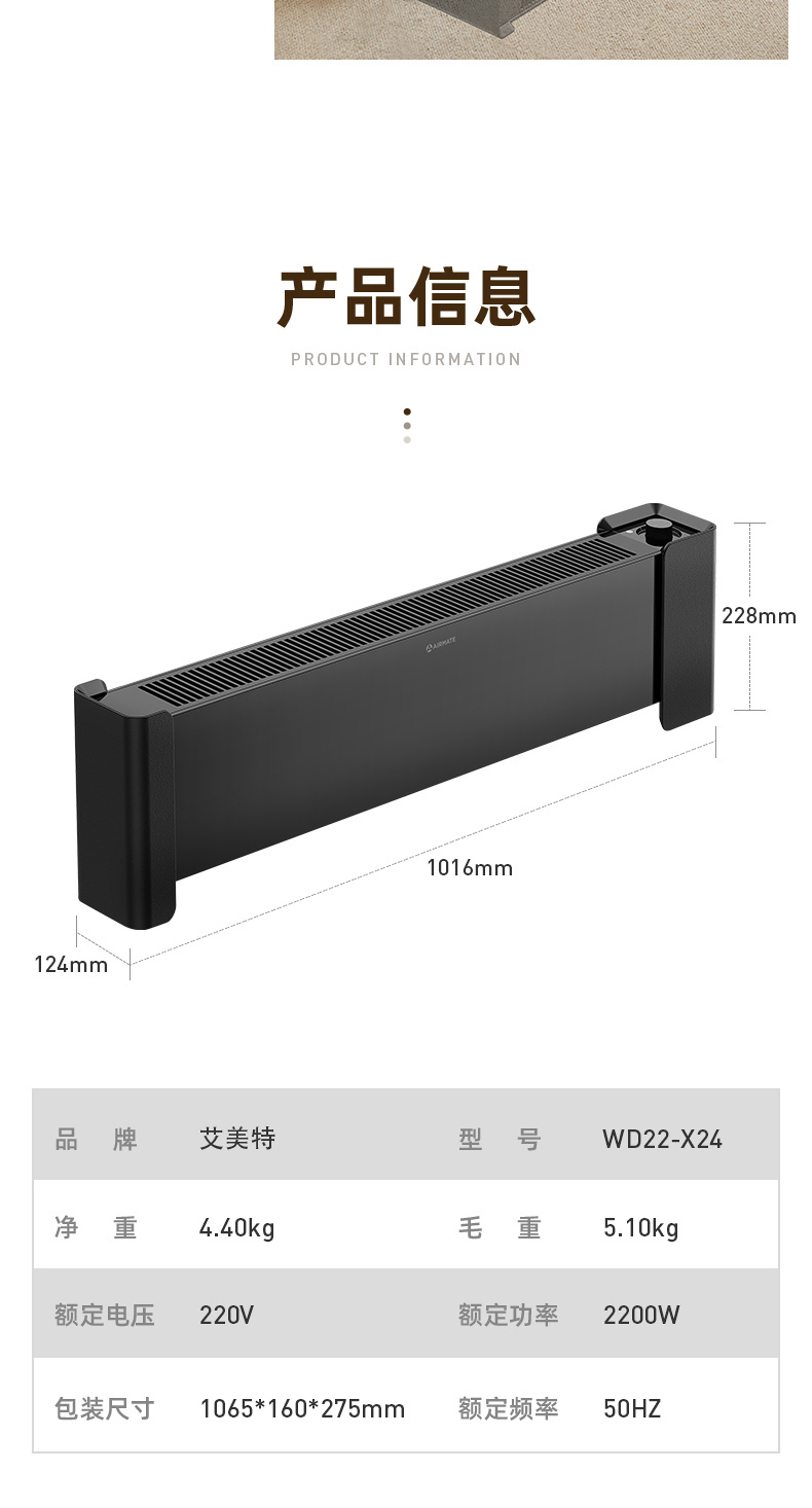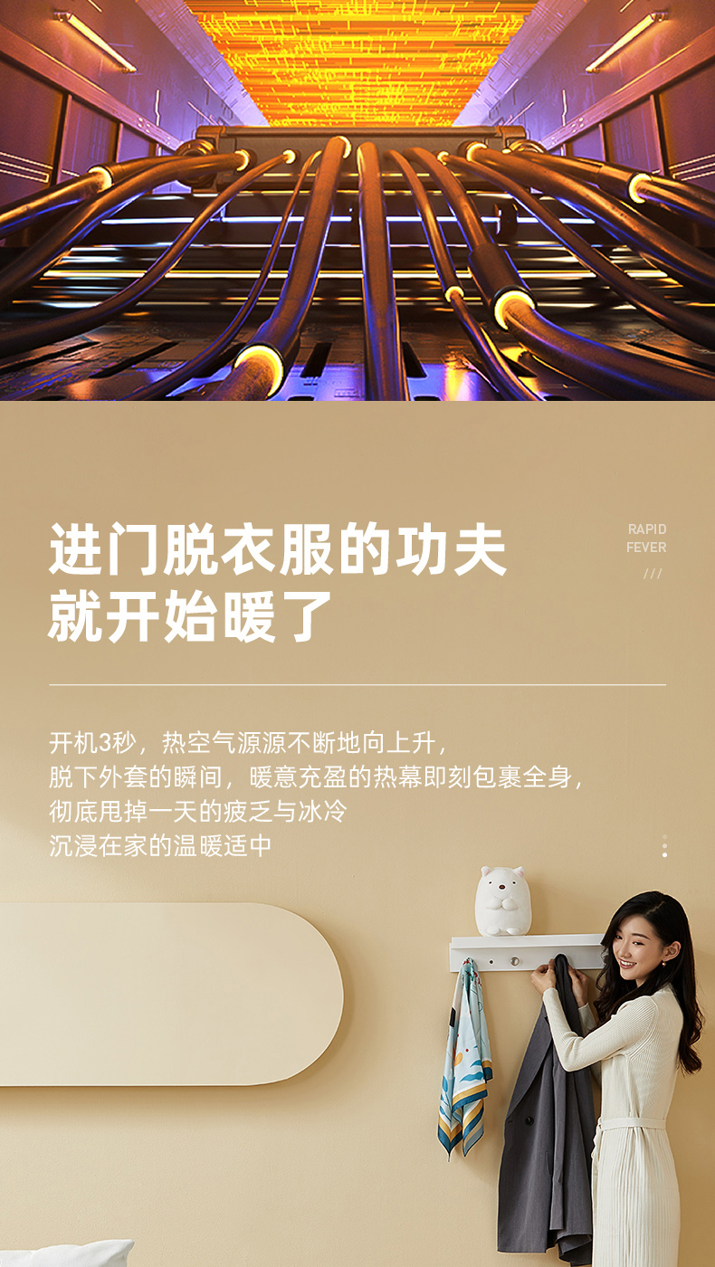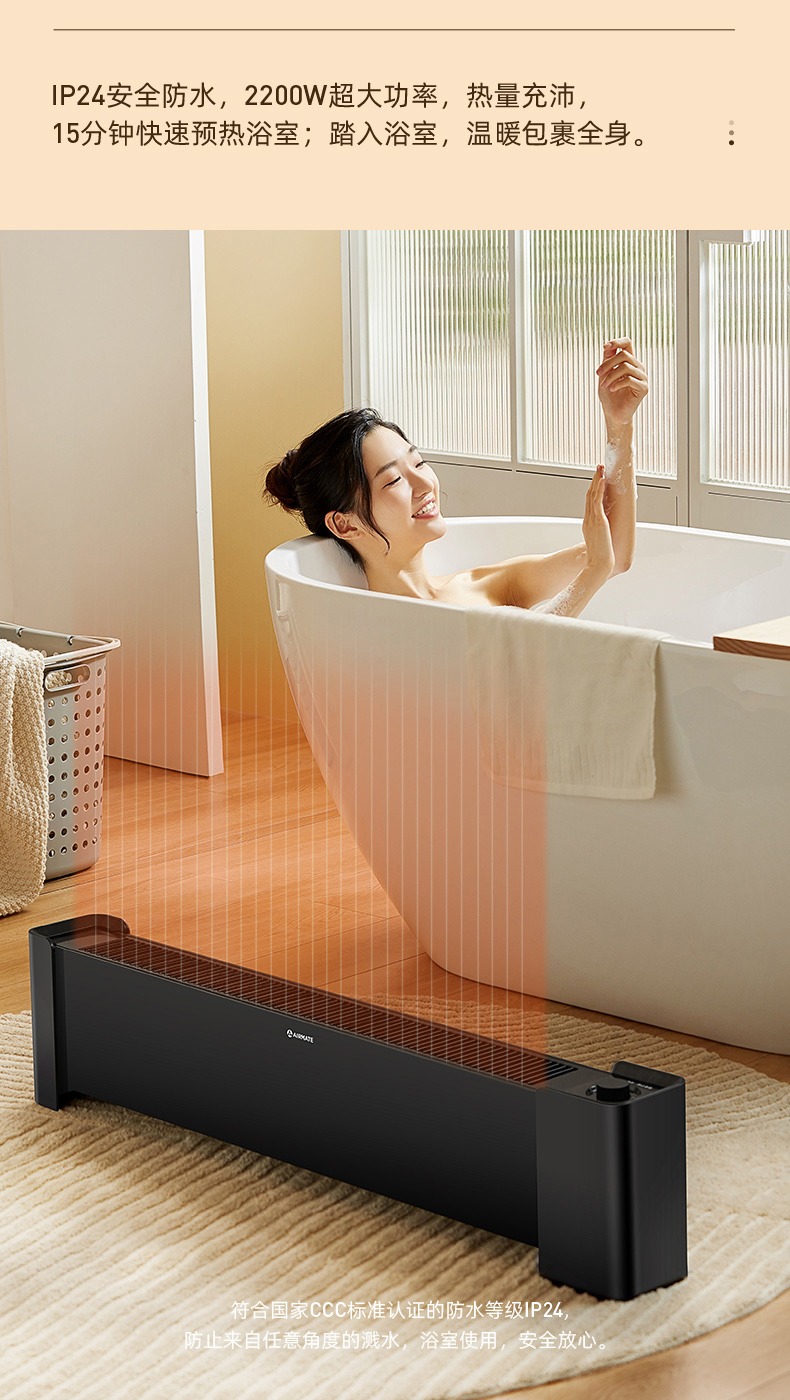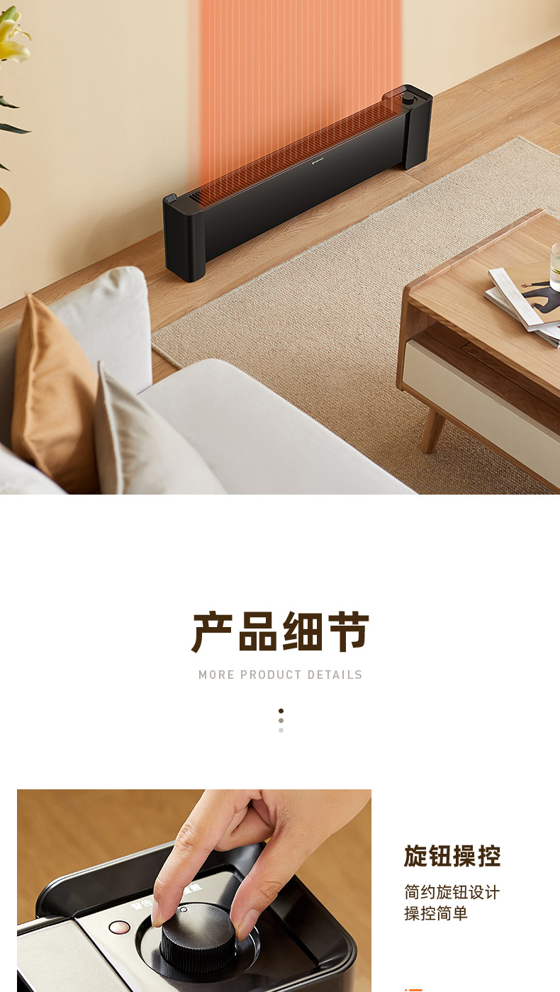 艾美特出品的移动式地暖,从下往上热气流立体循环,2200w超大热量,整屋升温。新型合金发热体,无光无声无风感,升温不干燥,113片大热量,3s速热 。具备安全童锁、倾倒自动断电、过热保护等安全防护。