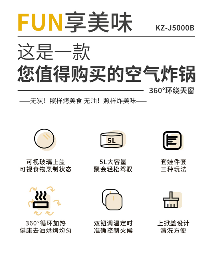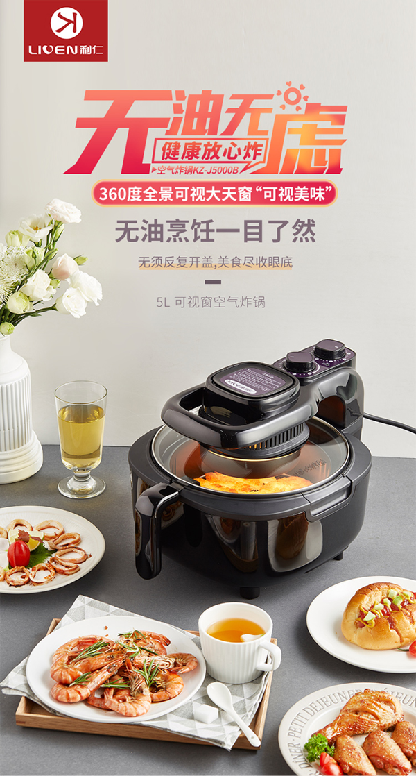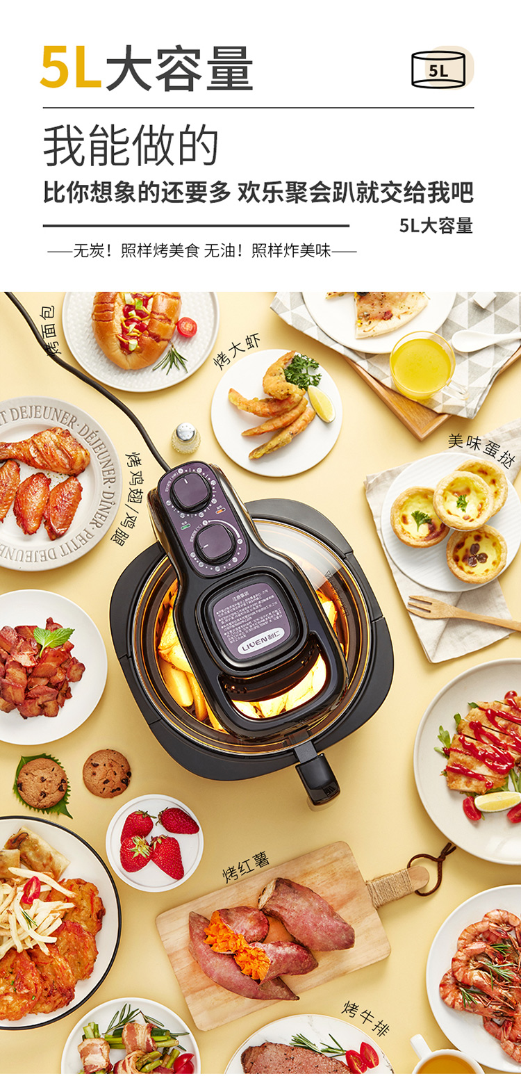 =239元 到手,黑白两色可选。这款利仁 KZ-J5000A,可无油煎炸、烘焙、烧烤等,功能齐全,同时无油更健康。