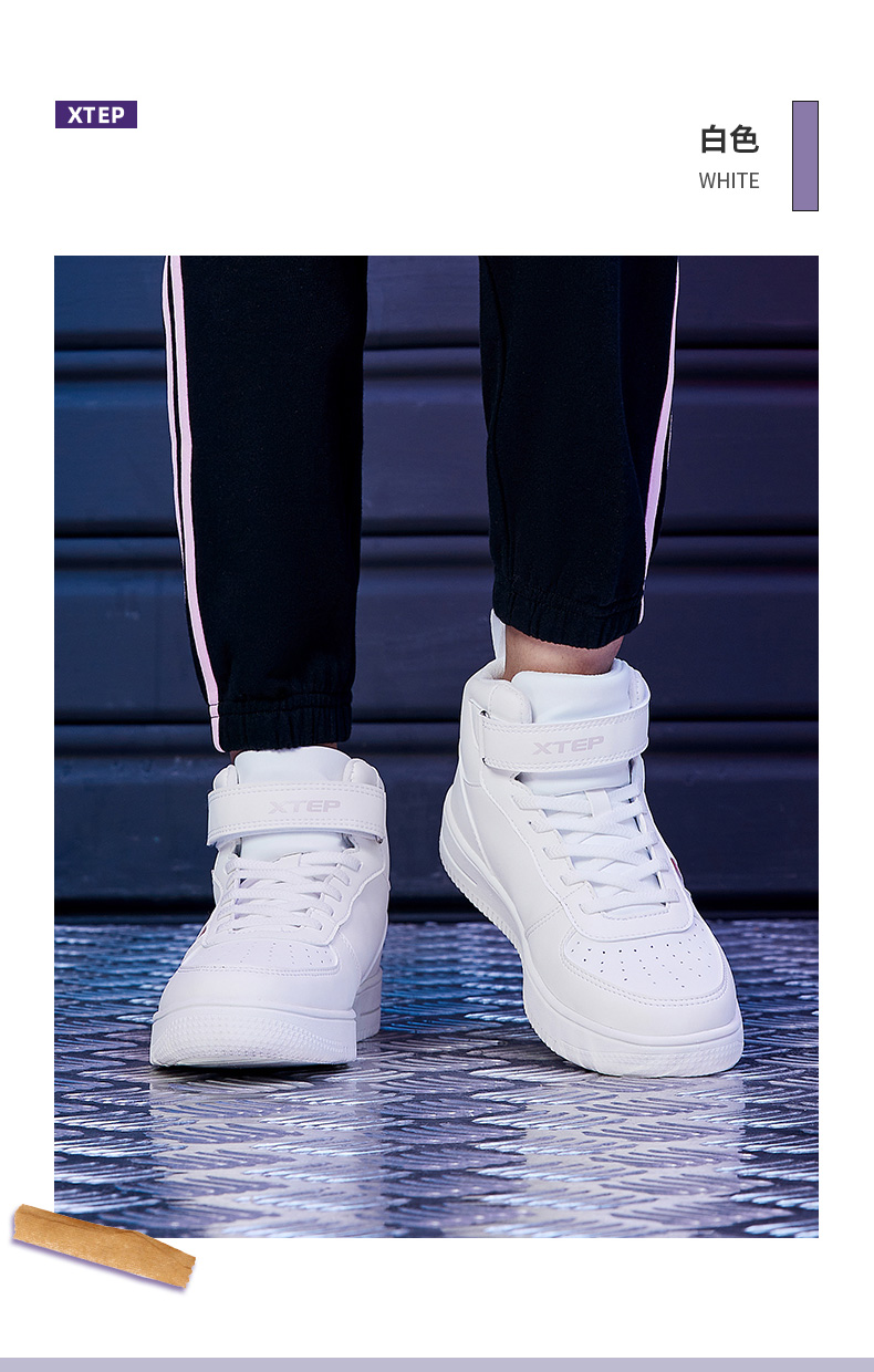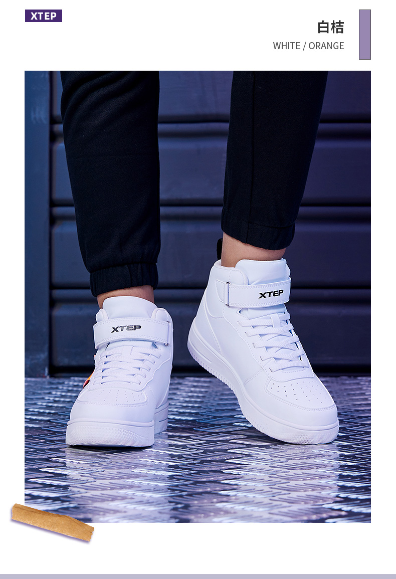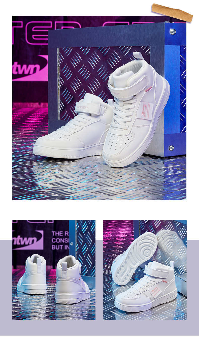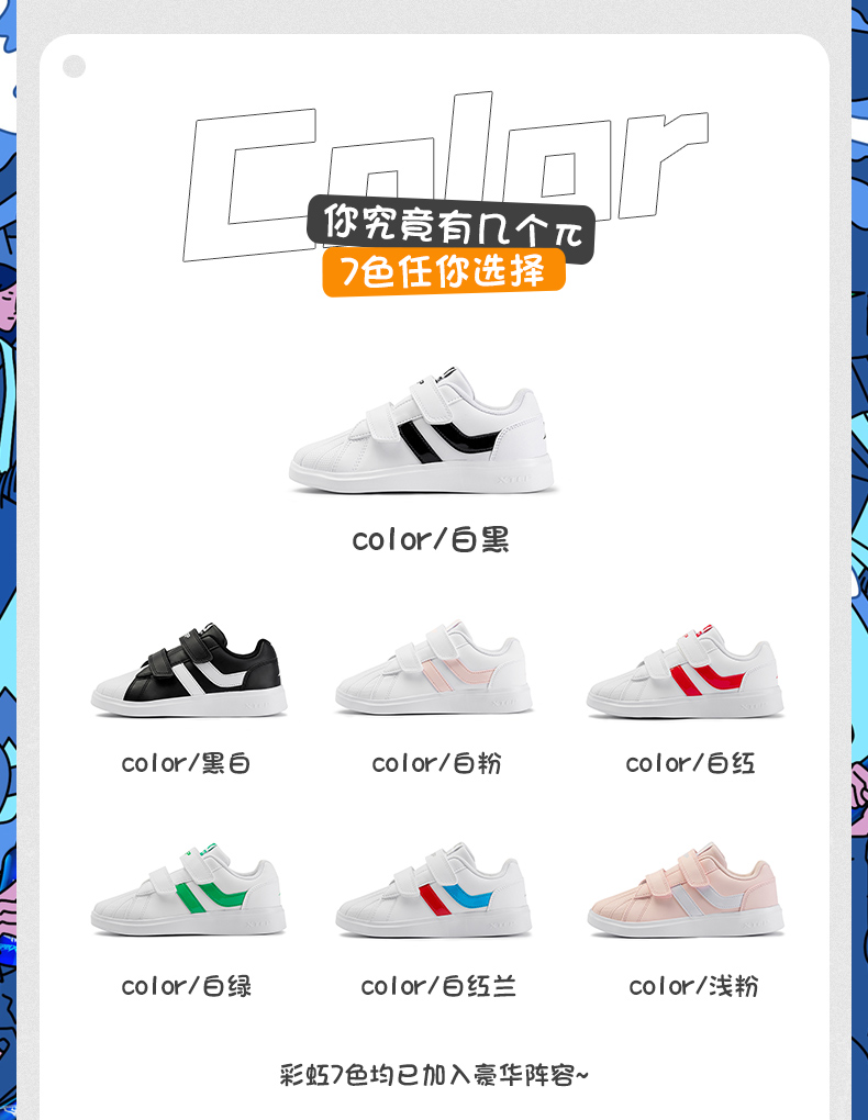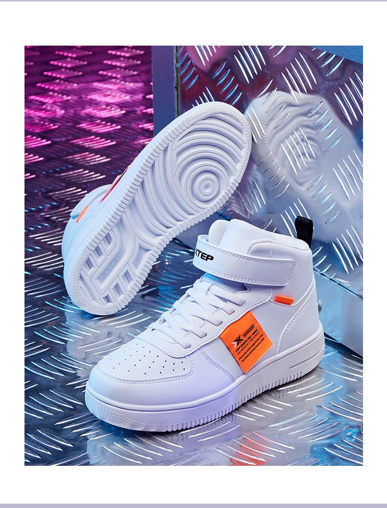 这款特步儿童休闲板鞋是2020年秋季新款,经典小白鞋造型,在款式上类似阿迪的Stan Smith,贝壳头+尾标的组合,很帅气有没有。