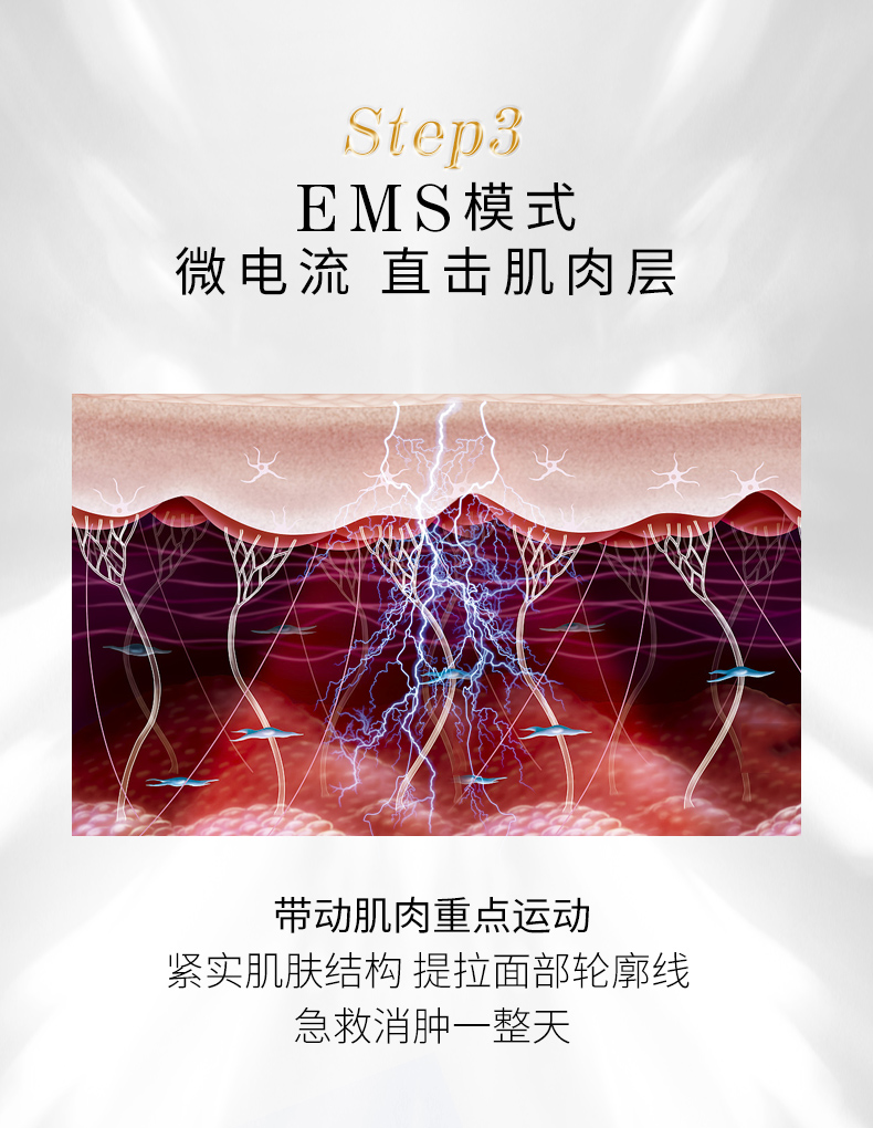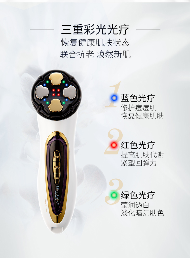 1.持有电穿孔、无针美塑、发光二级管、电肌肉刺激、高频5种重要的美容功能,一次使用可同时作无数的护理。