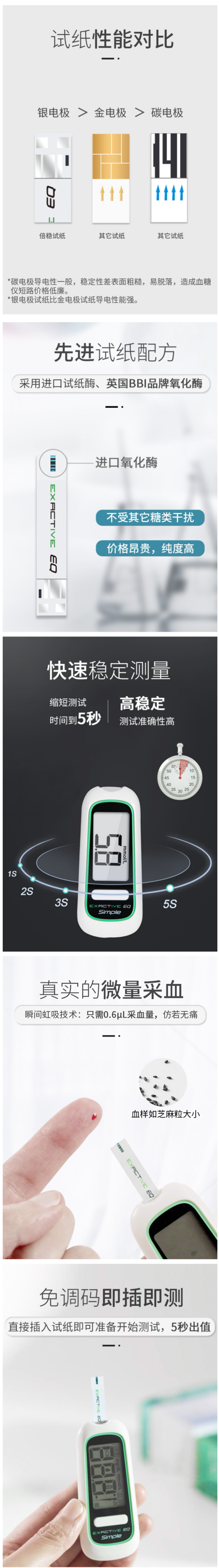 新型SOC测量芯片,能快速分析血液样本,急速测量5s出结果,无需等待;插条自动开机,智能免调码,无需手动设置,可明显减少测量误差,一键轻松退条。