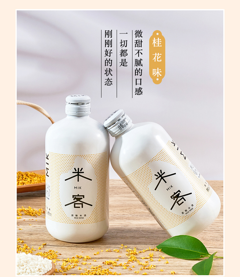 在魔都上海的一些人气时尚餐饮店里,最近频频出现一款名叫米客的米酒,包装简约、时尚清新,白色的瓶子颇为吸晴。米客米酒将都目标消费人群更精准地定位在都市年轻白领,仅用了半年时间便销售50万瓶。