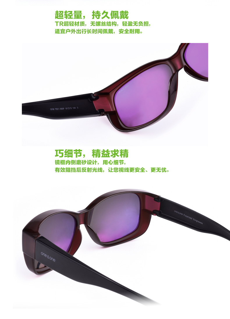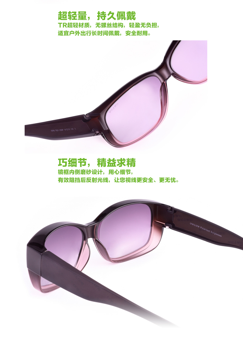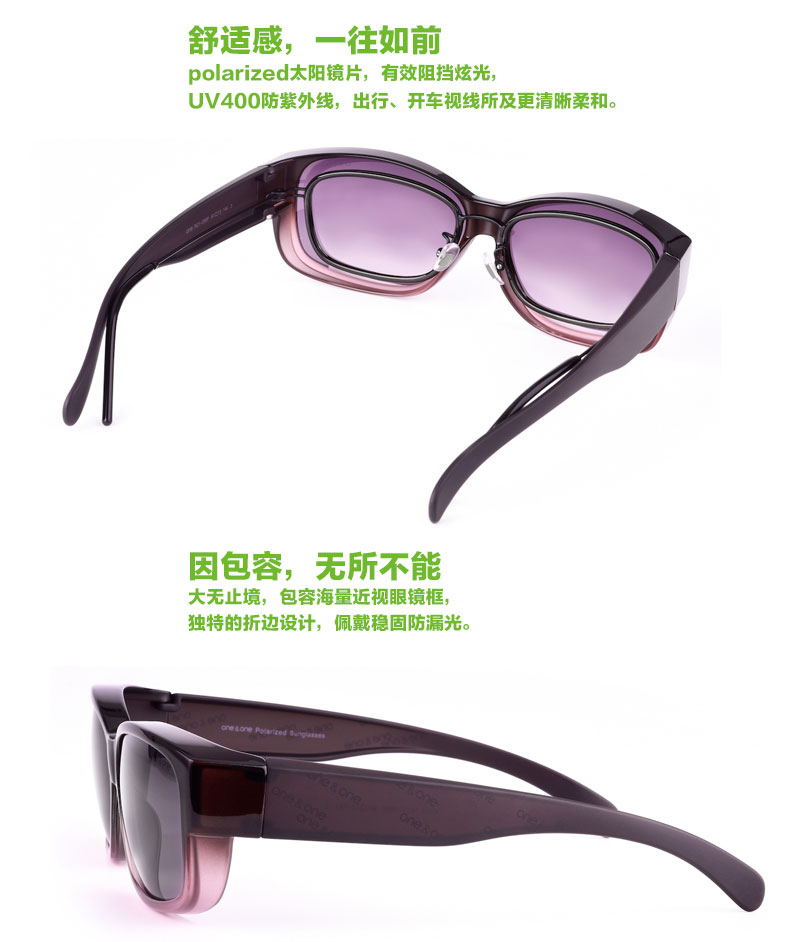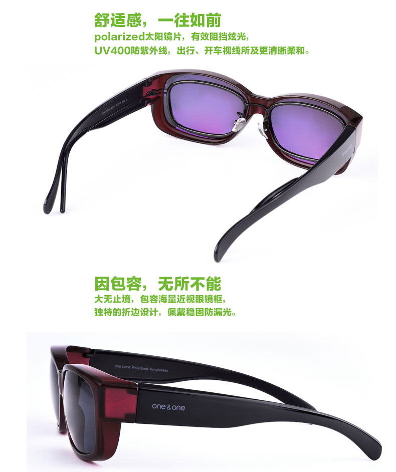 这款oneone 男女偏光太阳镜是套镜,近视眼镜佩戴者可以直接套在近视的光学镜架上,对于近视的朋友来说非常友好。如果是隐形眼镜佩戴者或正常视力都可以直接佩戴,适合各类人群。