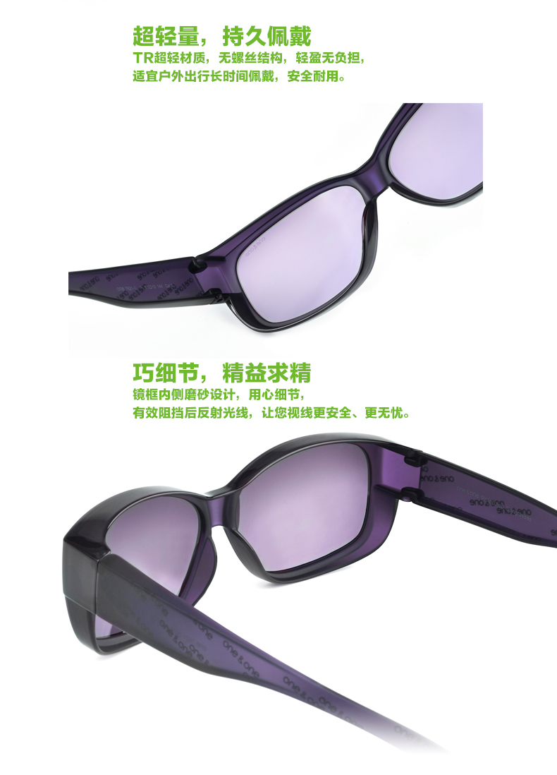 one&one的偏光套镜让近视人群可以轻松享受阳光视觉,解决近视人群的视觉烦恼。在线下占据近视太阳镜绝大部分的市场,是近视人群不可或缺的功能产品。