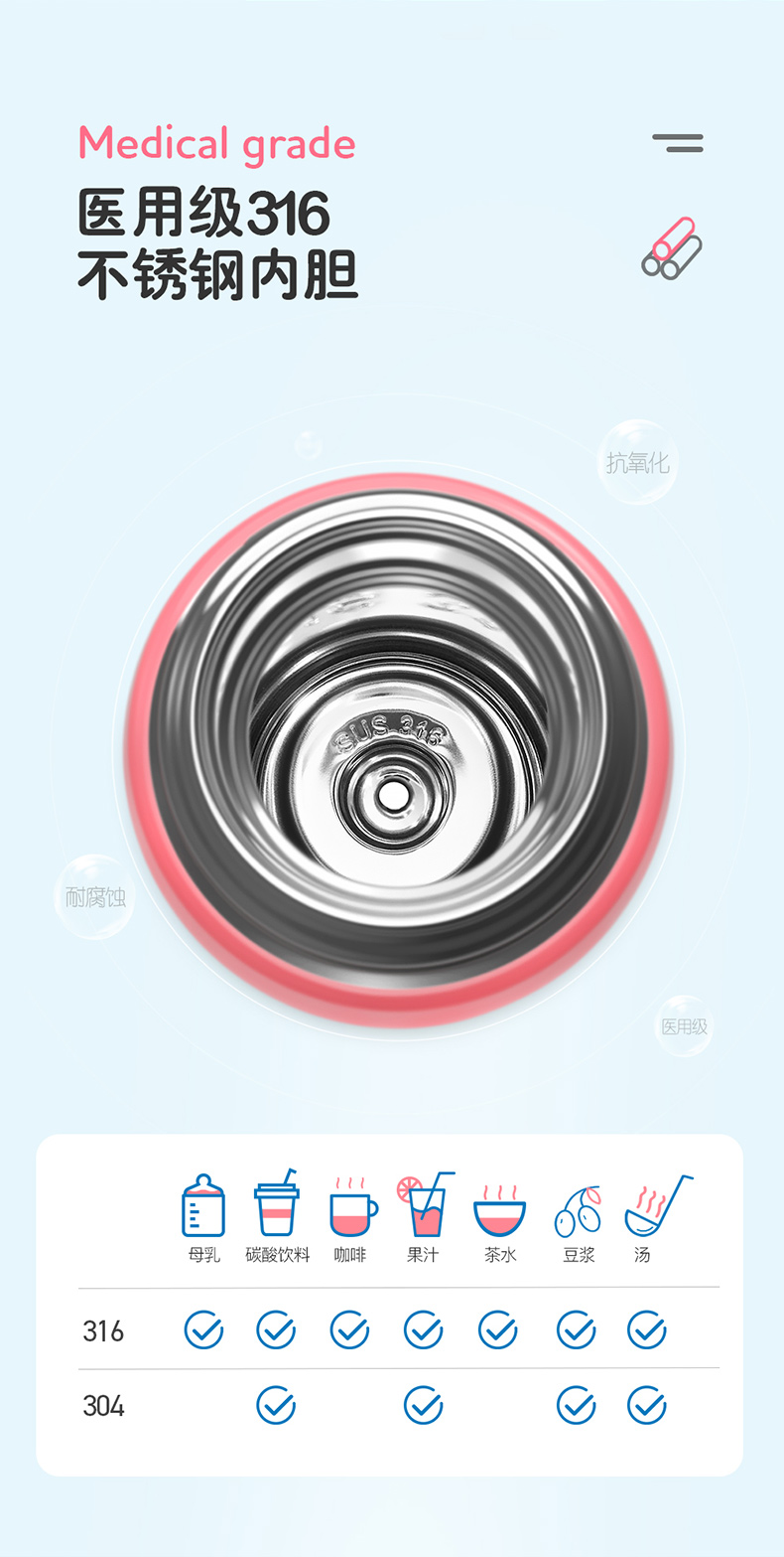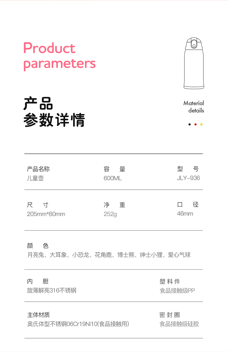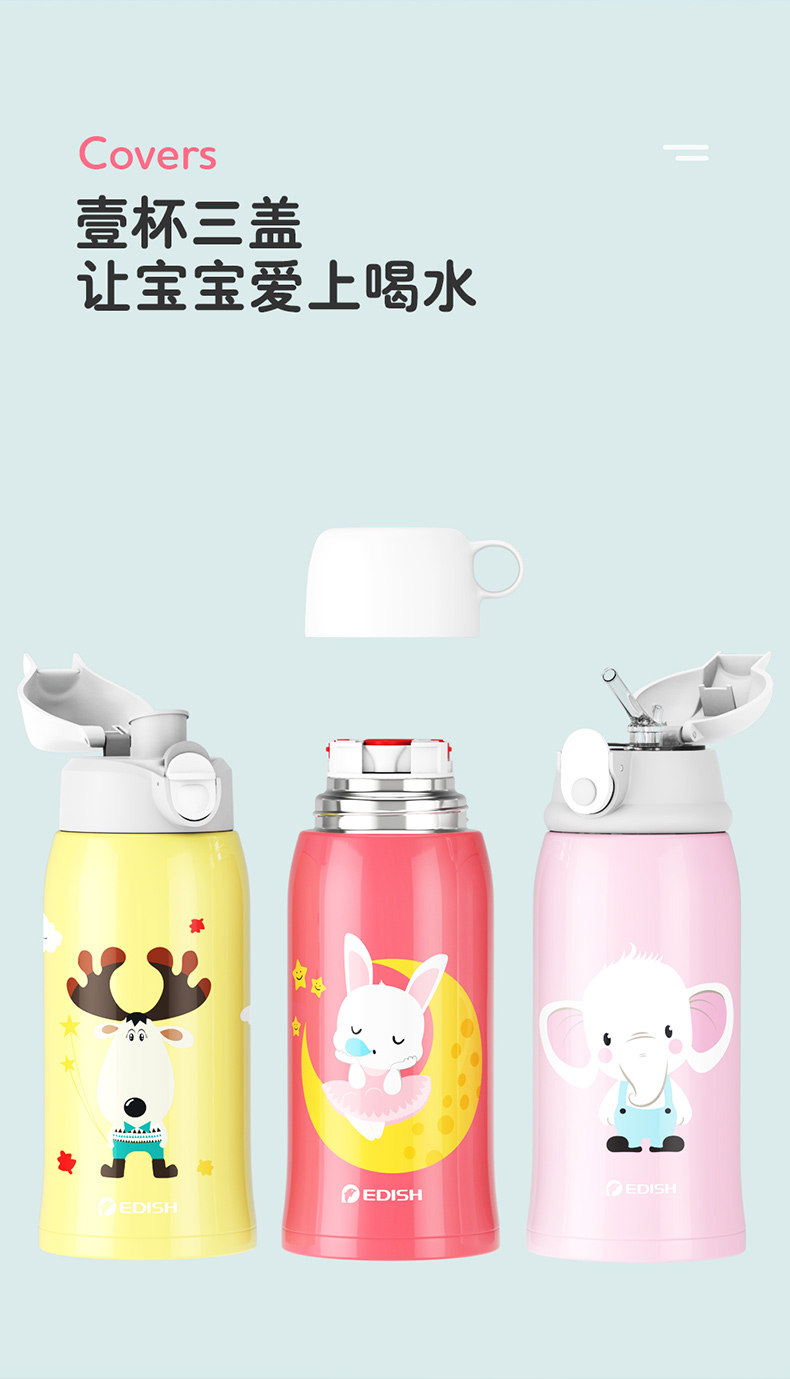 这款Edish壹滴水 儿童不锈钢保温杯,萌趣卡通设计,贝尔双层真空保温技术,选用更高端的奥氏体不锈钢内胆,保温性能更强,抗腐蚀更强,更健康耐用。