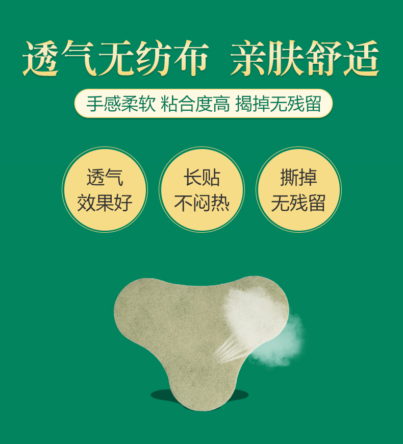 有膝盖贴、颈肩贴和腰椎贴可选,快贴艾叶贴,有效缓解疼痛。选用8种天然草本原材料制作,蝶型曲线设计的膝盖贴,贴得牢,不易脱落,行动方便。有效发热驱疼痛。