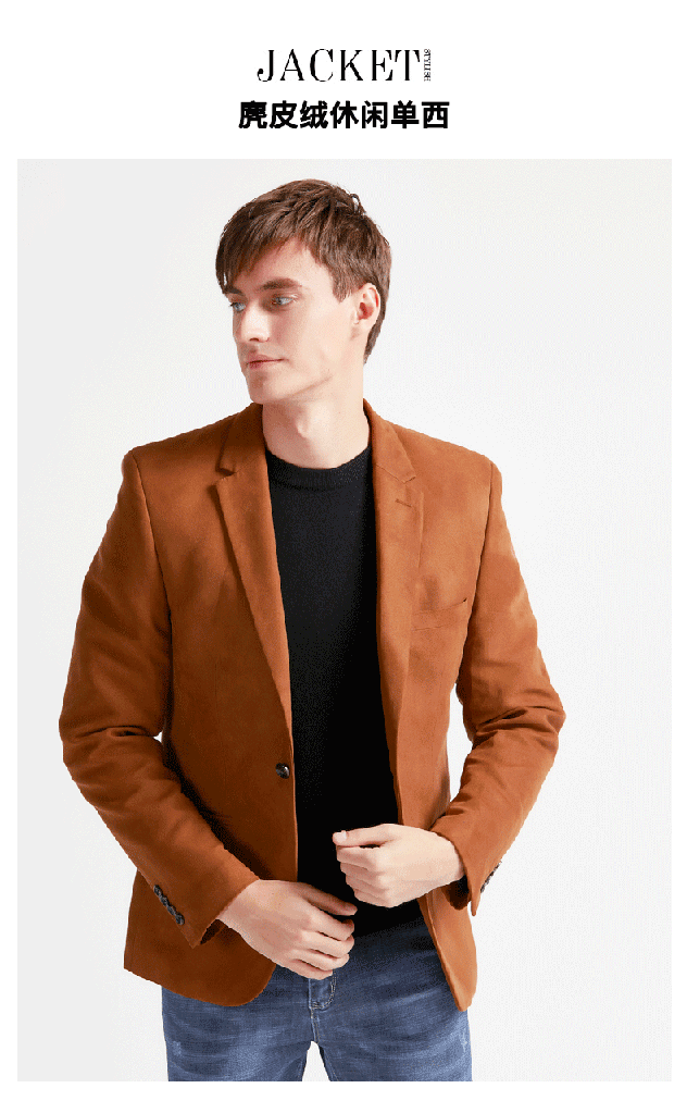 本米这款西装夹克,大胆的只给了一个驼色,问了公司女生,才了解女生原来都知道驼色显年轻。做成休闲西装款式,不像潮牌的衣服那么浮夸,比黑白灰显年轻,适合30-40岁有一定人生阅历的男士穿,里面可搭配黑白色T恤作为打底,或衬衫。