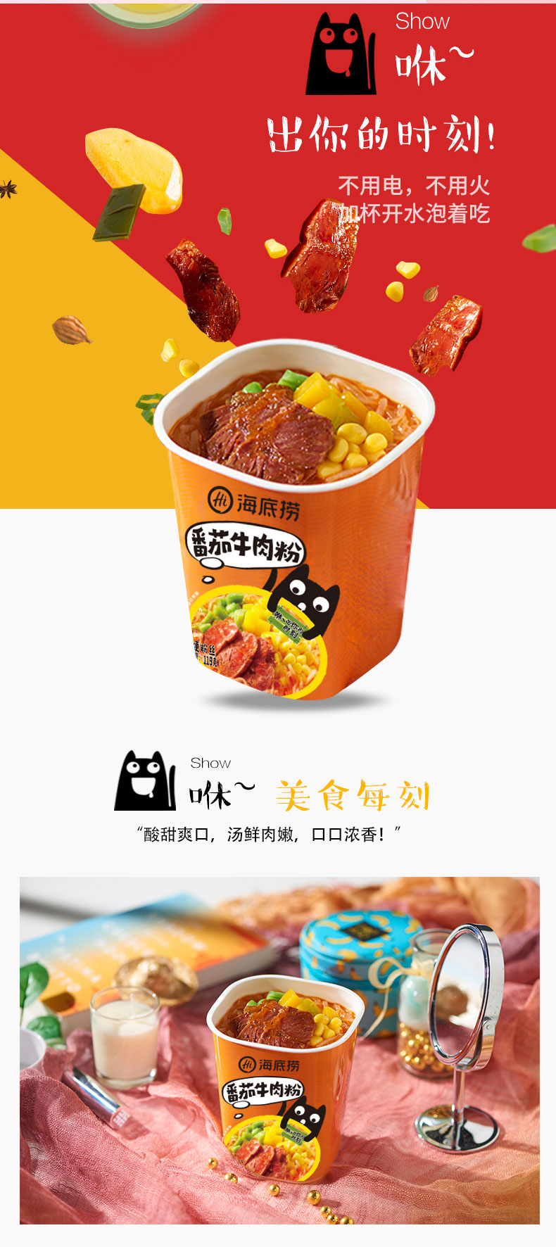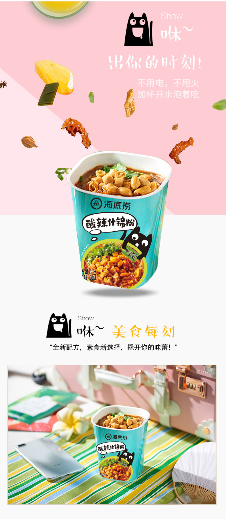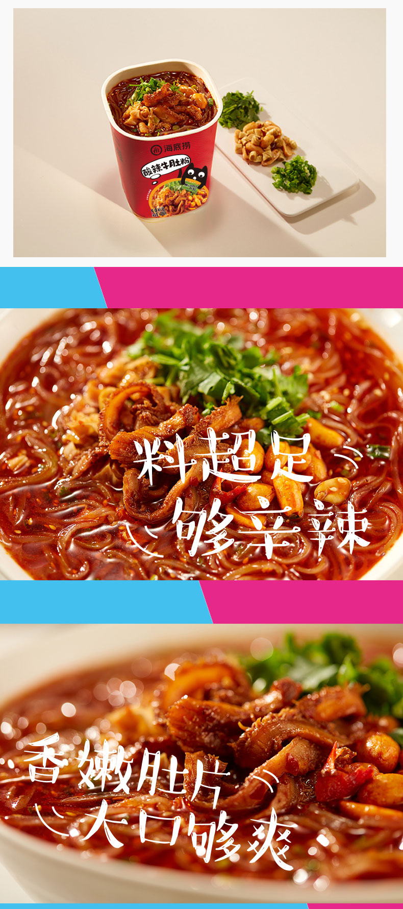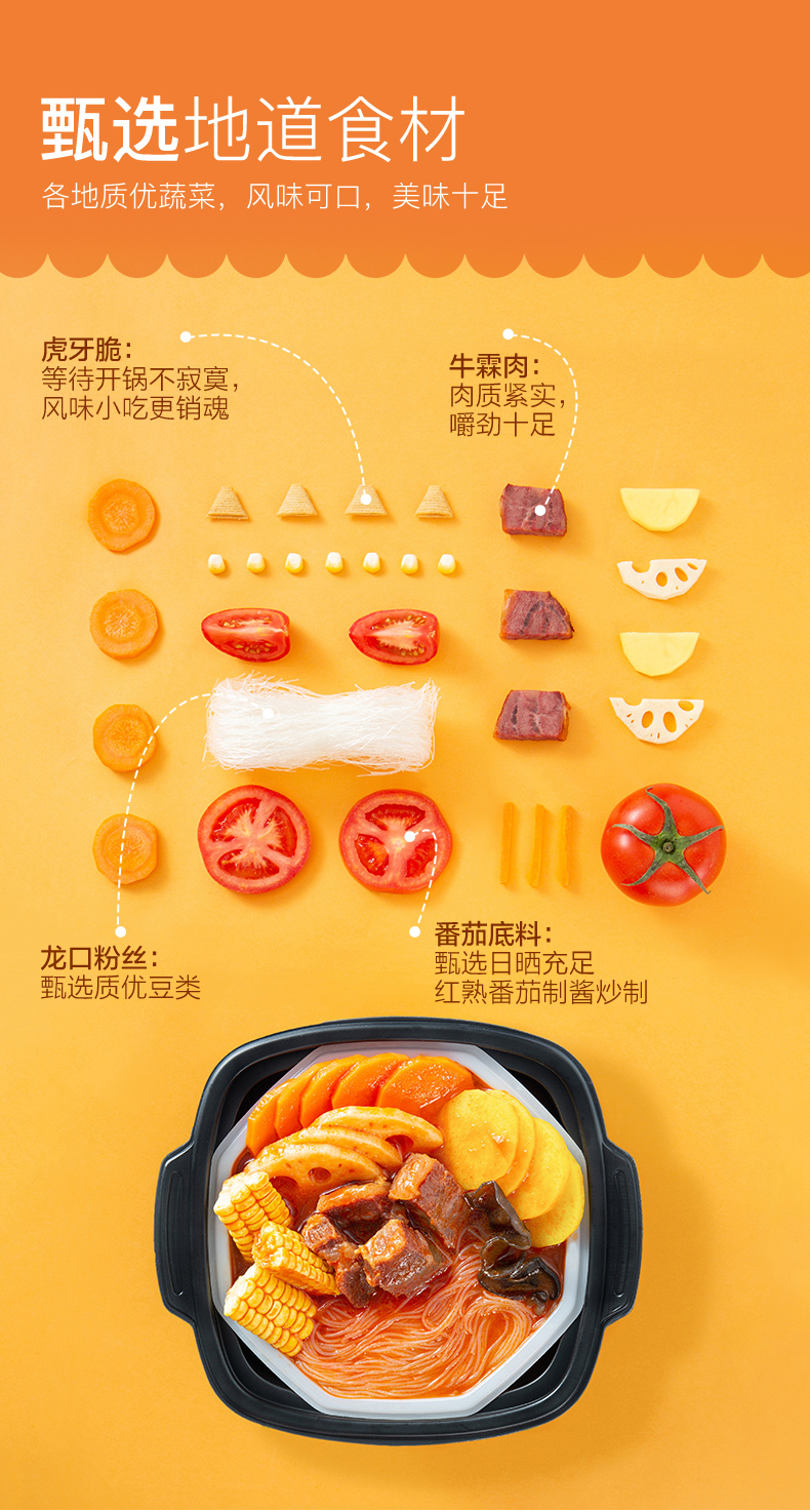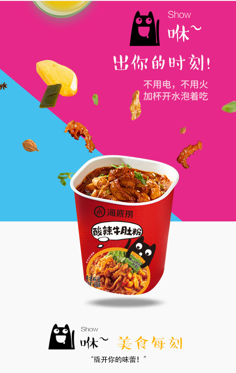 下单还赠零食5包,海底捞甄选地道食材,各地质优蔬菜,风味可口,美味十足,优质薯粉,爽滑劲道,配料丰富,酸辣爽口,连汤都想喝掉的酸辣粉,这样的搭配满分!不插电,不用火,一杯冷水,15分钟即享新鲜美味~