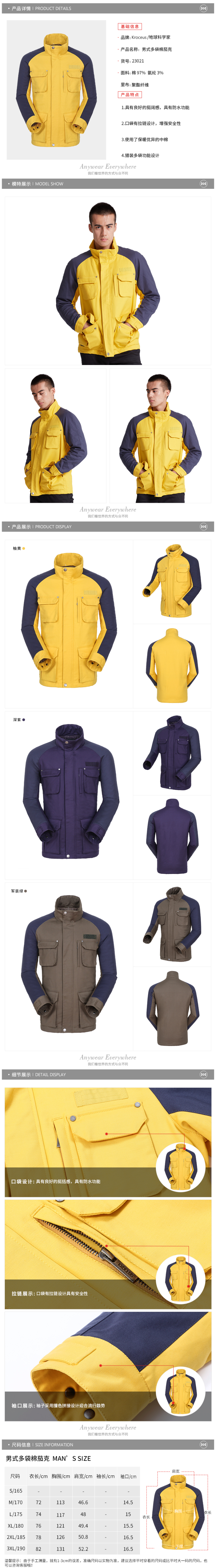这款地球科学家男防泼水保暖棉夹克,猎装风设计,特色有很多很多的口袋,可以携带非常多的东西,同时所有的口袋都用拉链或者翻袋封口,不外露置物更安全。