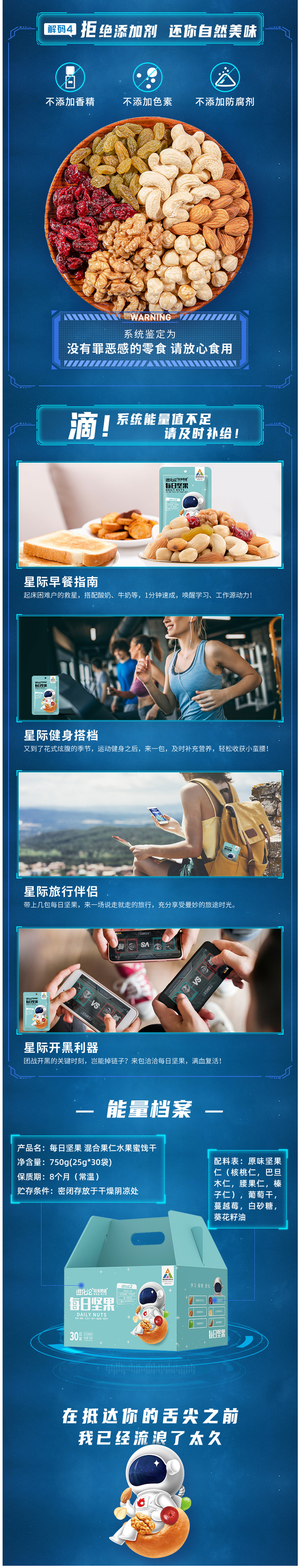 洽洽 每日坚果 混合果干坚,每袋含有美国巴旦木仁、加拿大蔓越莓干、新疆核桃仁、智利蓝莓干、土耳其榛子仁、乌兹别克斯坦黑加仑葡萄干、越南腰果仁。坚果和水果干中含有对人体有益的矿物质和微量元素,既可以补充人体所需,同时又是最佳的消遣零食,小袋包装,食用方便,更便携。