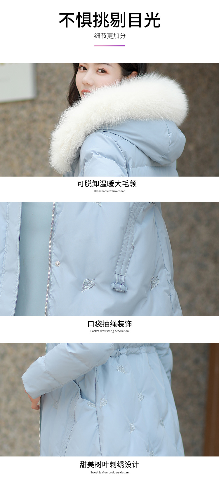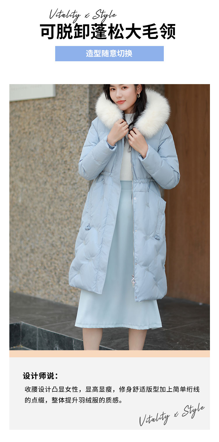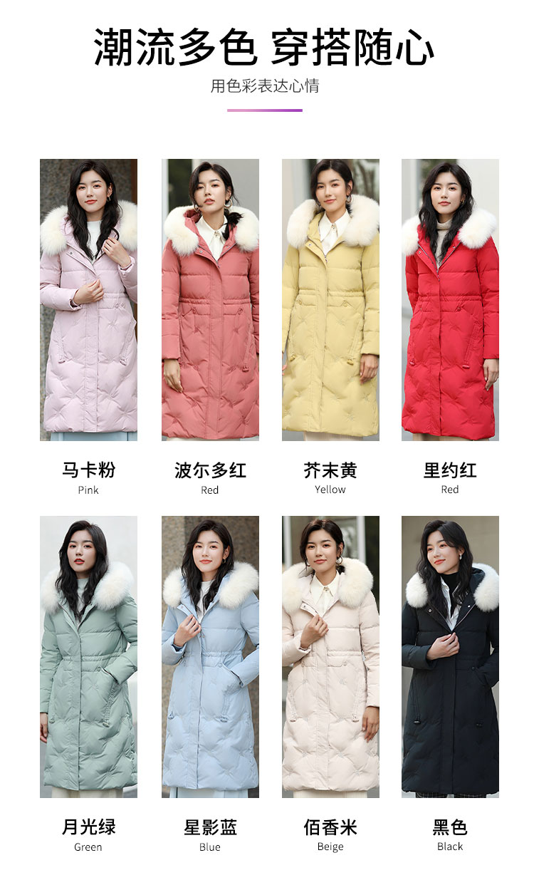 修身版型,搭配蓬松毛领设计,质感十足。多层架构设计,高密锁绒,不易跑绒钻绒。经典过膝长款设计,出门时尚百搭~
