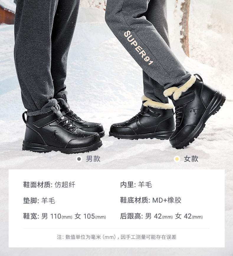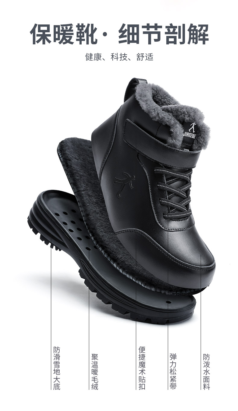 黑色男女款可选,尺码36-44。宋丹丹代言,健足乐,骆驼旗下老人健步鞋品牌,品质靠谱。这款老年鞋,采用高密度羊毛内里设计,真羊毛,绵密厚实,蓄热保暖;超纤皮鞋面,柔软舒适,防泼水,防风防寒。