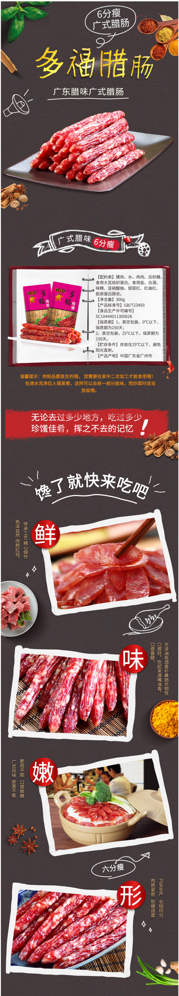 这广州酒家 6分瘦多福腊肠,是经典的广式口味香肠,相较于川式腊肠的麻辣及熏烤的味道,广式腊肠则加入较多的蔗糖和酒。