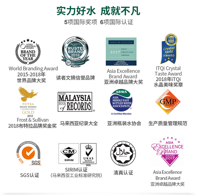 spritzer是马来西亚瓶装水第一生产商,创建于1989年「官网在此」,马来西亚国会、东南亚运动会指定用水品牌,连续6次荣获国际风味暨品质评鉴所(iTQi)认可,颁予顶级美味奖章(Superior Taste Award)里的最高荣誉,以荣获90%或以上的佳绩,被列入三星美味的级别。连续4年被马来西亚纪录大全收录。