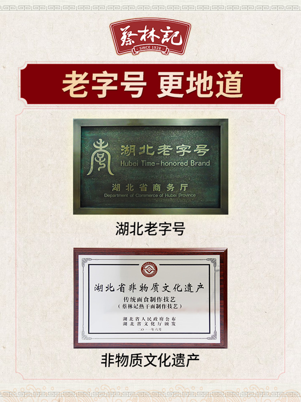 蔡林记是有近百年的老字号小吃面馆,非物质文化遗产,湖北老字号,首届中国面条文化节上,武汉蔡林记热干面被评为“中国十大面条”,享有武汉名小吃的美誉,味道算是最正宗的。采用小麦粉、水、食用盐、植物油等食材制成。把面放在肥水里面煮4-6分分钟后,捞起加入酱料就可以吃了,跟煮挂面一样,鲜香美味,回味无穷。