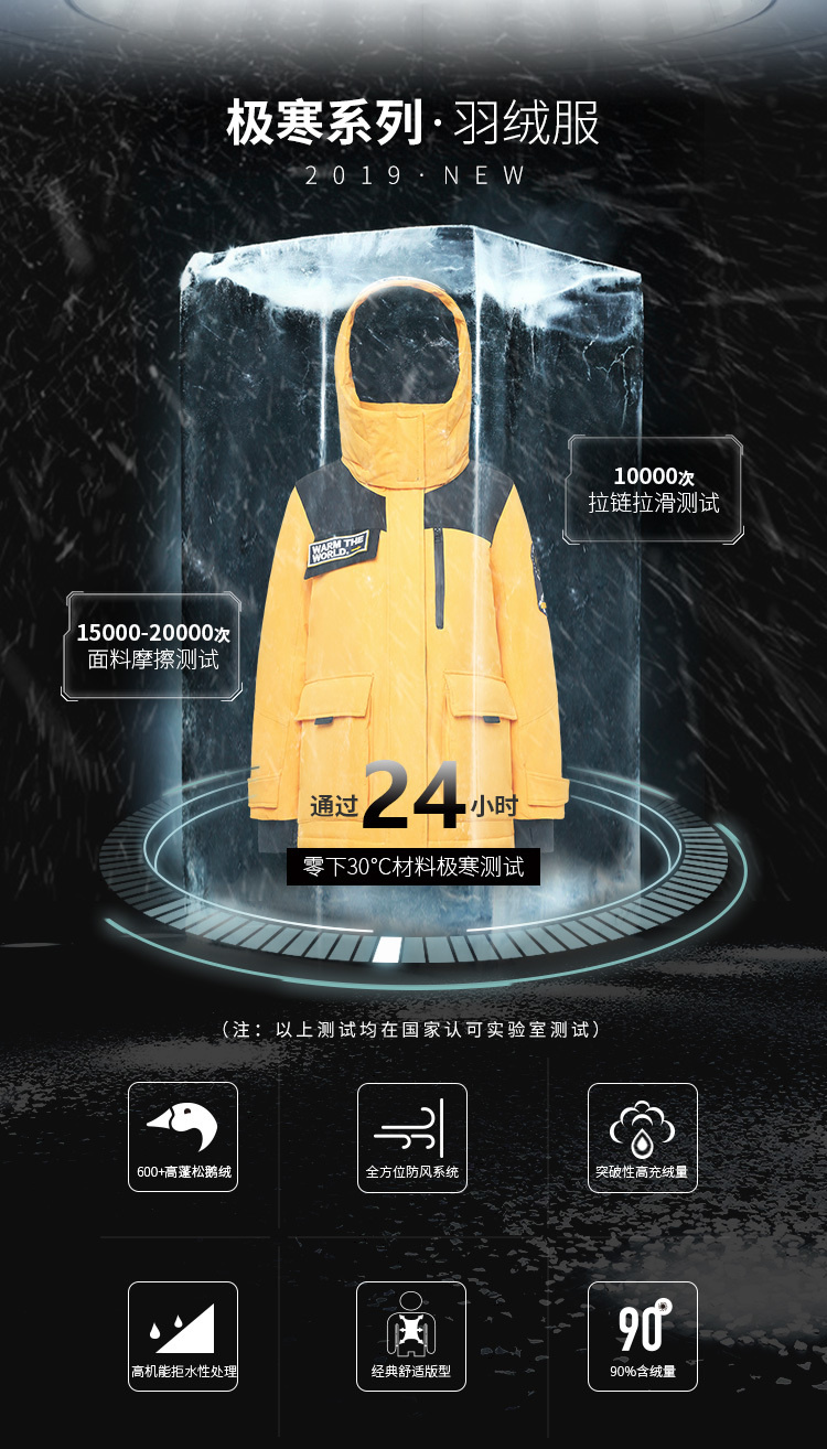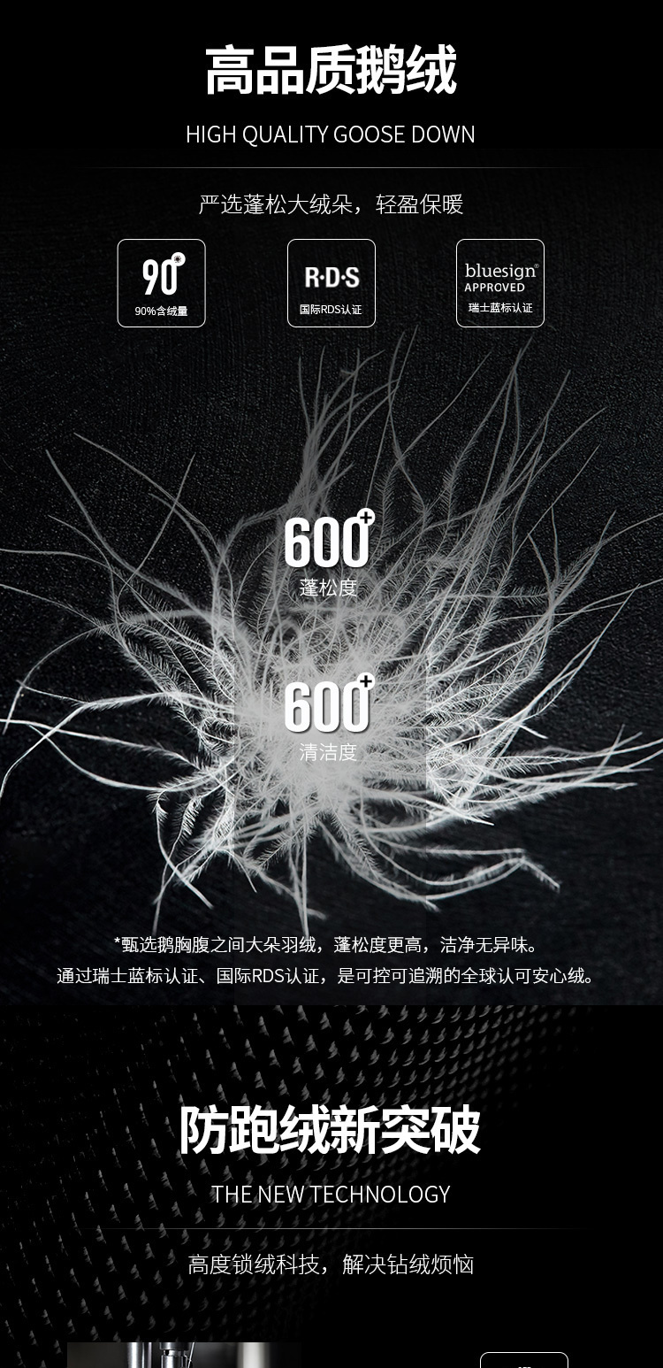 极寒系列是波司登2017年9月28日推出的旗舰系列羽绒服,对标加拿大和韩系品牌。选用90%、蓬松度600+的优质鹅绒,标上了-30℃的温标。要知道加大拿鹅填充的还是鸭绒,只是充绒量很高。而且波司登的绒通过了国际RDS认证、瑞士蓝标认证的全球认可安心绒。