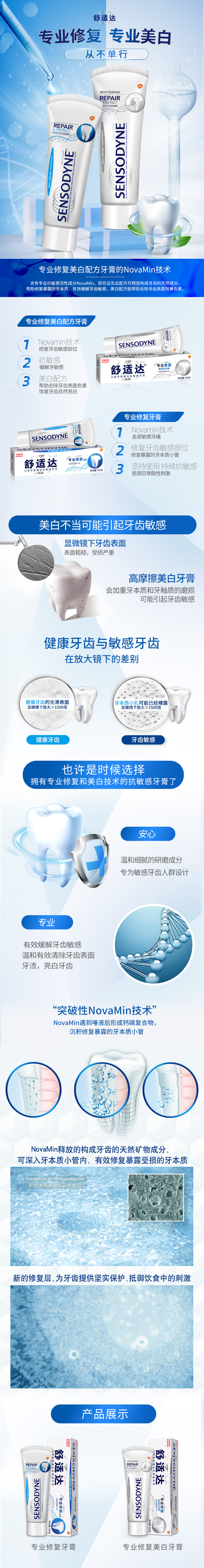 舒适达最贵最有效的抗敏感牙膏,专业修复款,突破性Novamin技术,修复牙本质小洞,从根本上解决牙齿敏感,适合牙齿敏感者日常使用。