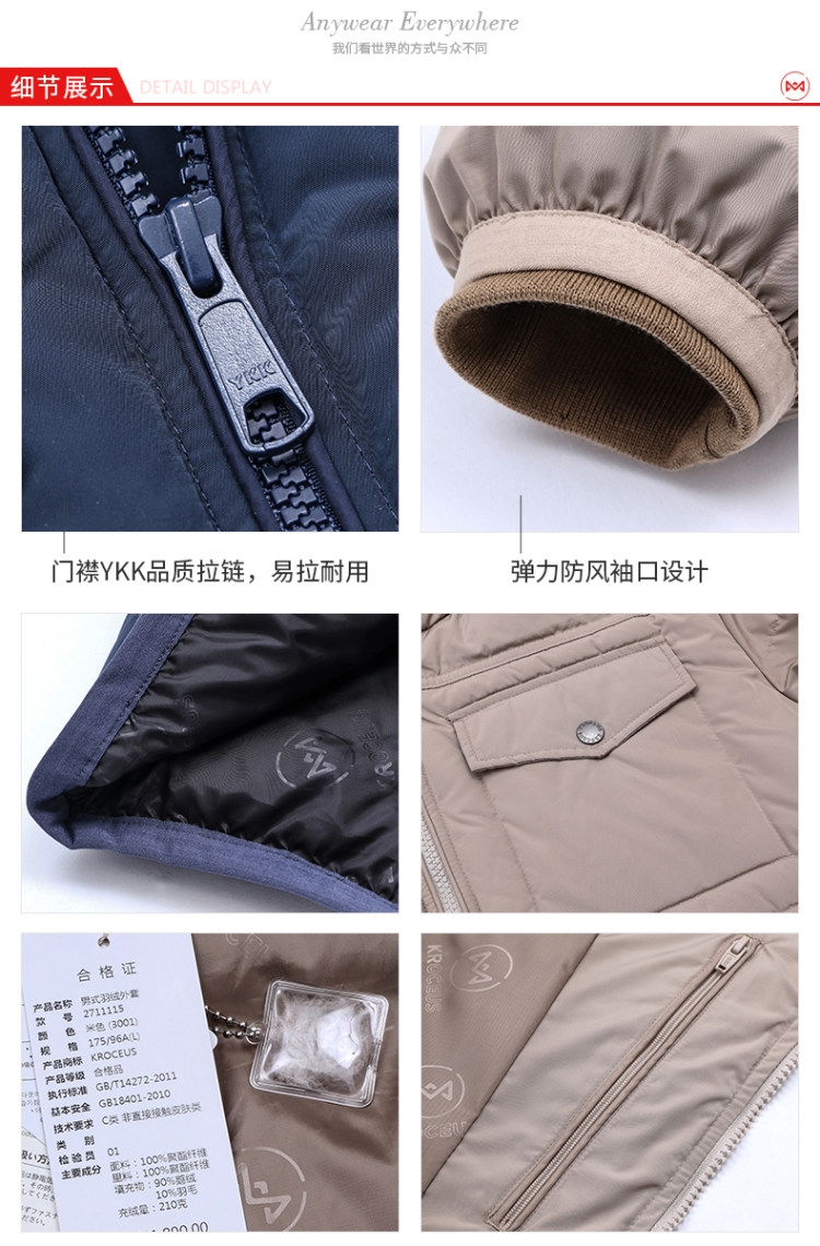 地球科学家这款是商务风格羽绒服,外层是亲肤记忆面料,触感舒适,不易起皱,表层经过疏水涂层处理。填充800蓬松度鹅绒,L码充绒量210克,属于厚款羽绒服。主拉链是YKK的,帽檐和袖口都是防风松紧的。