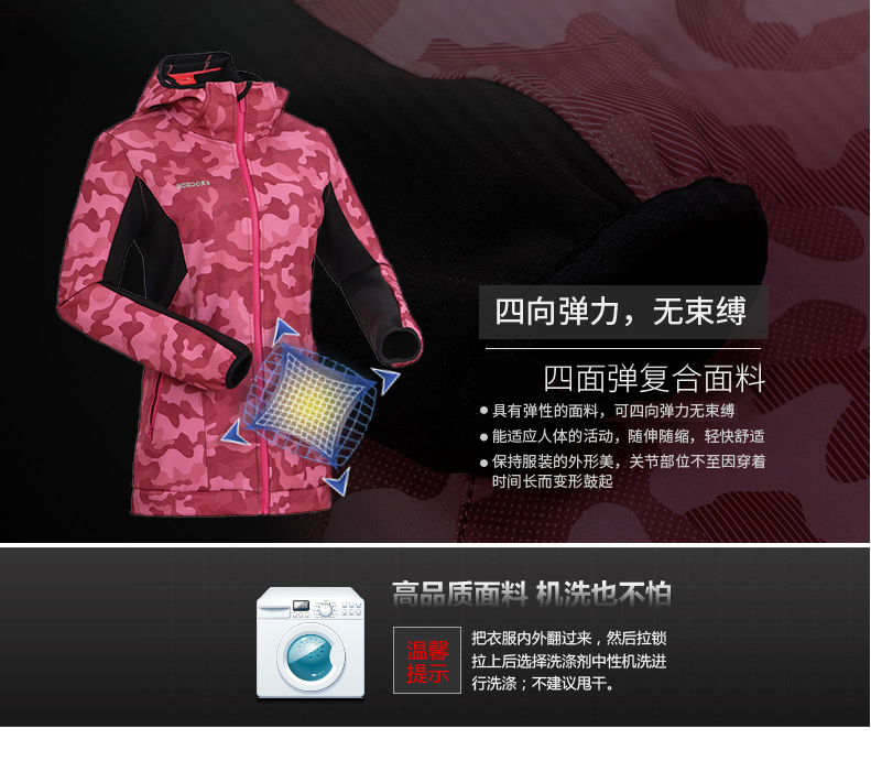 软壳相比于硬壳,软壳具有良好的透气性,伸展舒适性,虽没硬壳那么强的防水功能,但普通的小雨和泼水也基本无惧,应用场景更广泛,适合日常穿着,是一款适合春秋冬三季穿的多功能外套。