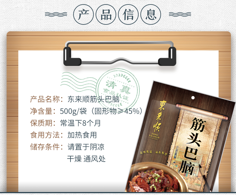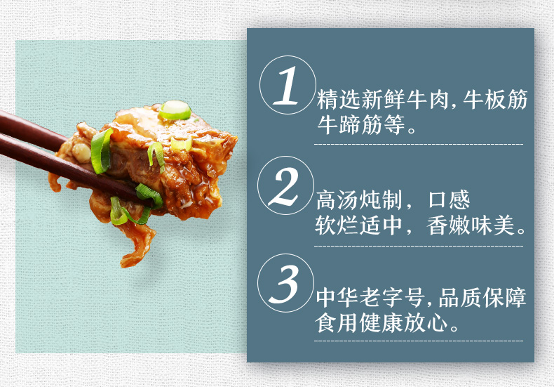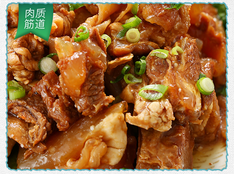 这款筋头巴脑,精选内蒙古大草原天然草饲黄牛,精选新鲜牛肉、牛板筋、牛蹄筋等部位,高汤古法炖制,口感软烂适中,香嫩味美。锁鲜包装,加热即食,吃货必囤!