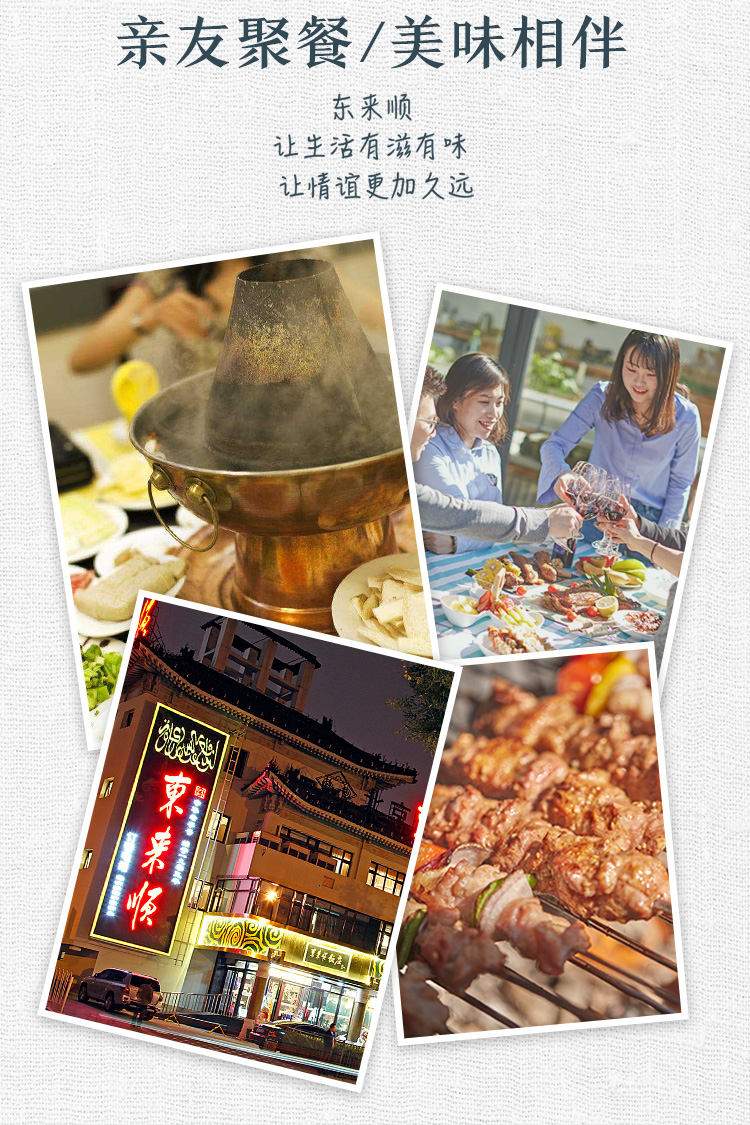 东来顺饭庄始建于1903年,是北京饮食业老字号中享有盛誉的一个历史名店。历经百年苍桑的打造,如今已成为京华饮食菜系中的标志性品牌和享誉海内外的“中国驰名商标”。“百年诚信东来顺,清真一品冠京城”——这是东来顺人在上一个世纪赢得的光荣与商誉。