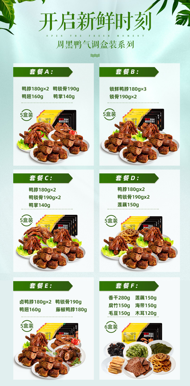 A:鸭脖*2+锁骨+鸭翅+鸭掌(5盒)