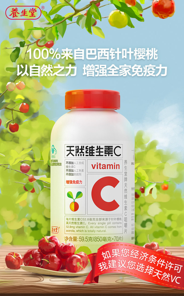 天猫养生堂旗舰店49.9元,可领35元优惠券,实付14.9元到手,是正价158元的0.9折;养生堂牌VC天然维生素C咀嚼片30片,促进铁吸收,维持骨骼和牙龈健康,提高免疫力,防感冒,高含量,高吸收,维生素c咀嚼片,随时随地、每天一片,多C多漂亮!领券链接点此