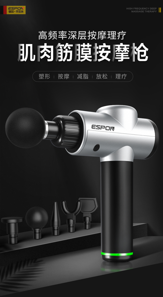 筋膜按摩枪,通过高频振动,以达到缓解长期久坐、剧烈运动所导致的身体酸痛、缓解肌肉紧绷的功效,适用于日常生活中肌肉酸痛僵硬,快速激活肌肉组织,促进血液淋巴回流。