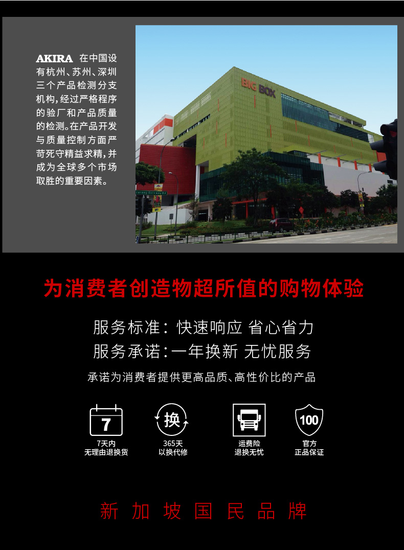 AKIRA创建于1990年,从2006-2013年,连续八年获得“新加坡超级品牌”荣誉,2013年成立南京爱家乐电器有限公司, 作为新加坡AKIRA小家电中国专营机构。