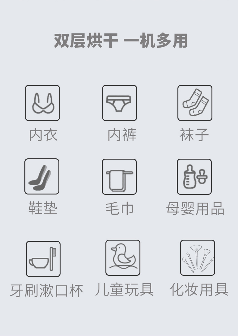 天猫akira爱家乐旗舰店399元,下单立减160元,可领10元优惠券,实付229元到手,这款小型烘干机拥有紫外线杀菌、巴氏杀菌、臭氧杀菌三种杀菌模式,灭菌率高达99.9%,在配合60℃-70℃恒温热风烘干,可用于内衣裤、袜子鞋垫、毛巾、牙刷漱口杯、玩具、化妆用品、母婴用品等消毒杀菌。
