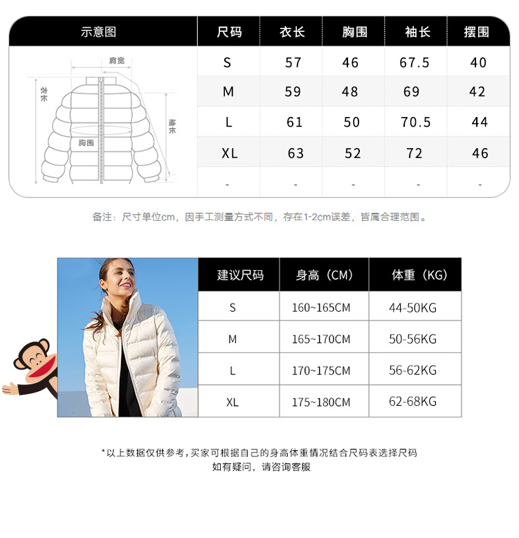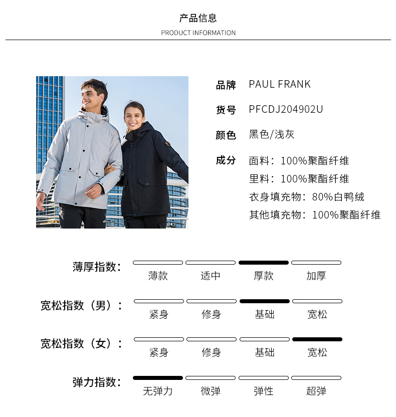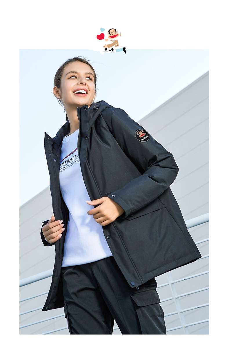 天猫paulfrank乐为奇专卖店549元,可领350元优惠券,实付199元到手,男女多款可选,略有差价。这款羽绒服填充80%白鸭绒,精选鸭腹部的大绒朵羽毛,蓬松保暖性好。韩版版型设计,上身合体有型。经典长款连帽设计,胸口为标志性大嘴猴印花,时尚百搭修身版型,上身不臃肿,简约纯色款式,休闲百搭。