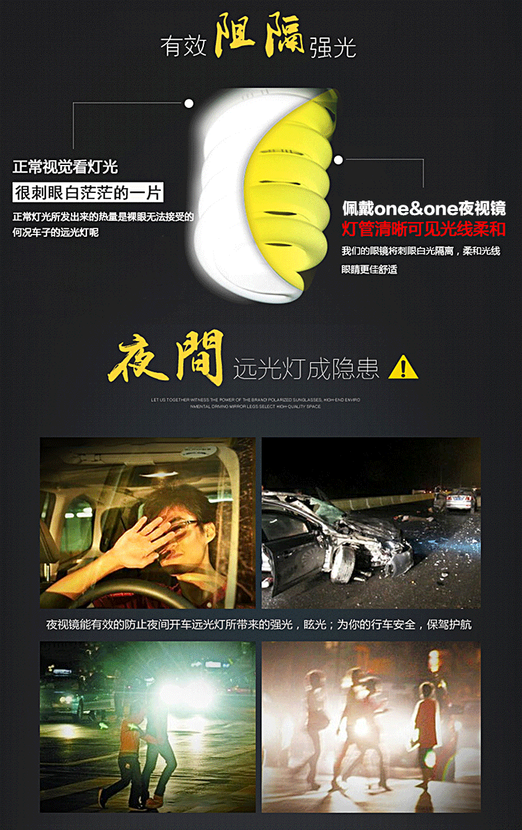 这款oneone 防远光偏光夜视镜,是一款专业TAC驾驶镜,会将远光灯的刺眼白光隔离,只让柔和光线进入眼帘,提高视线清晰度,专为开车司机设计。