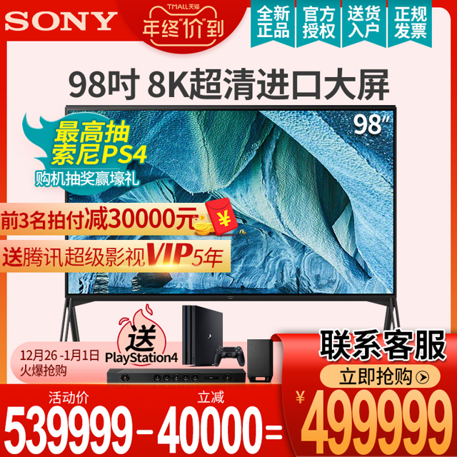 天猫索尼星金月誉专卖店目前售价529999元,参加活动满99999元减30000元,叠加1000元优惠券,实付498999元,近期好价,感兴趣的买买不容错过~