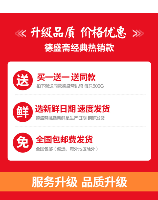 买一送一,共到手两只,超市卖30多元一只。德盛斋是德州知名品牌,自有生鸡绿色养殖基地,品质靠谱。正宗德州扒鸡,生产日期新鲜,选用生态放养鸡,搭配花椒大料等做成五香扒鸡,肉质鲜嫩,味香透骨,开袋即食。规格:500g/袋。