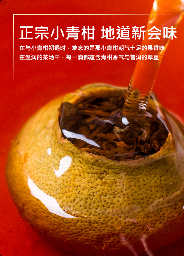 广东新会小青柑,内料萃取百年古树产的宫廷上等普洱。柑皮厚实,既有柑皮果香,也有普洱醇香,入口清甜甘润,回甘上乘,一颗可泡一整天,具有排毒养颜,去油解腻,护肝护胃等功效,规格:100g。