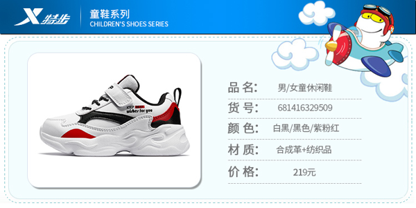 这款特步儿童运动鞋,是2019年的秋冬款,经典老爹鞋款式,鞋面采用织物、合成革拼接而成,形成丰富的层级感,透露着浓浓的复古气息,颜色搭配也非常清新。