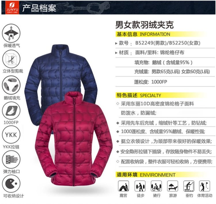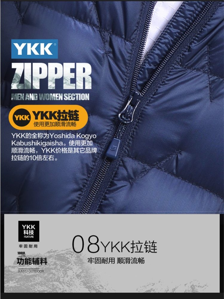 在设计与版型上,这款短袖羽绒服是亚洲人版型,男款腰部略收,女款是修身收腰款式。细节上,领子是加高设计避免灌风,左右两个口袋,主拉链和口袋拉链都是YKK的。