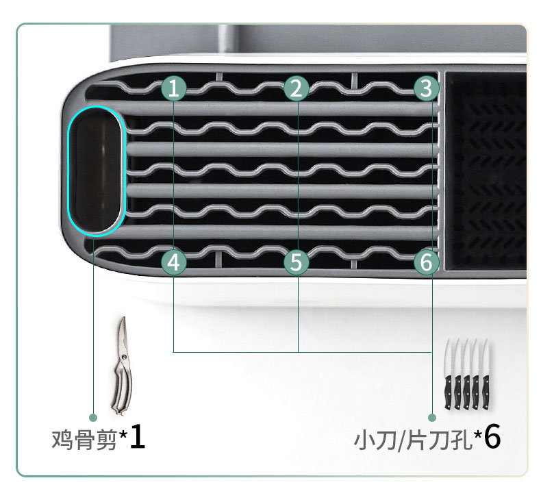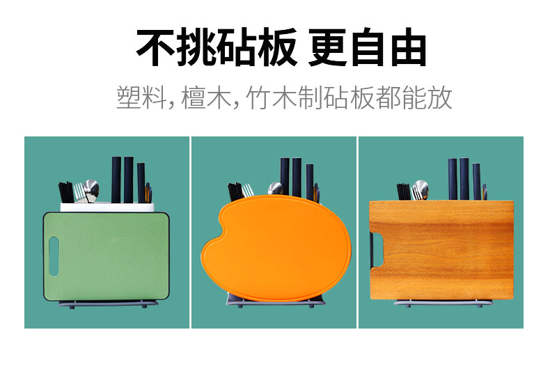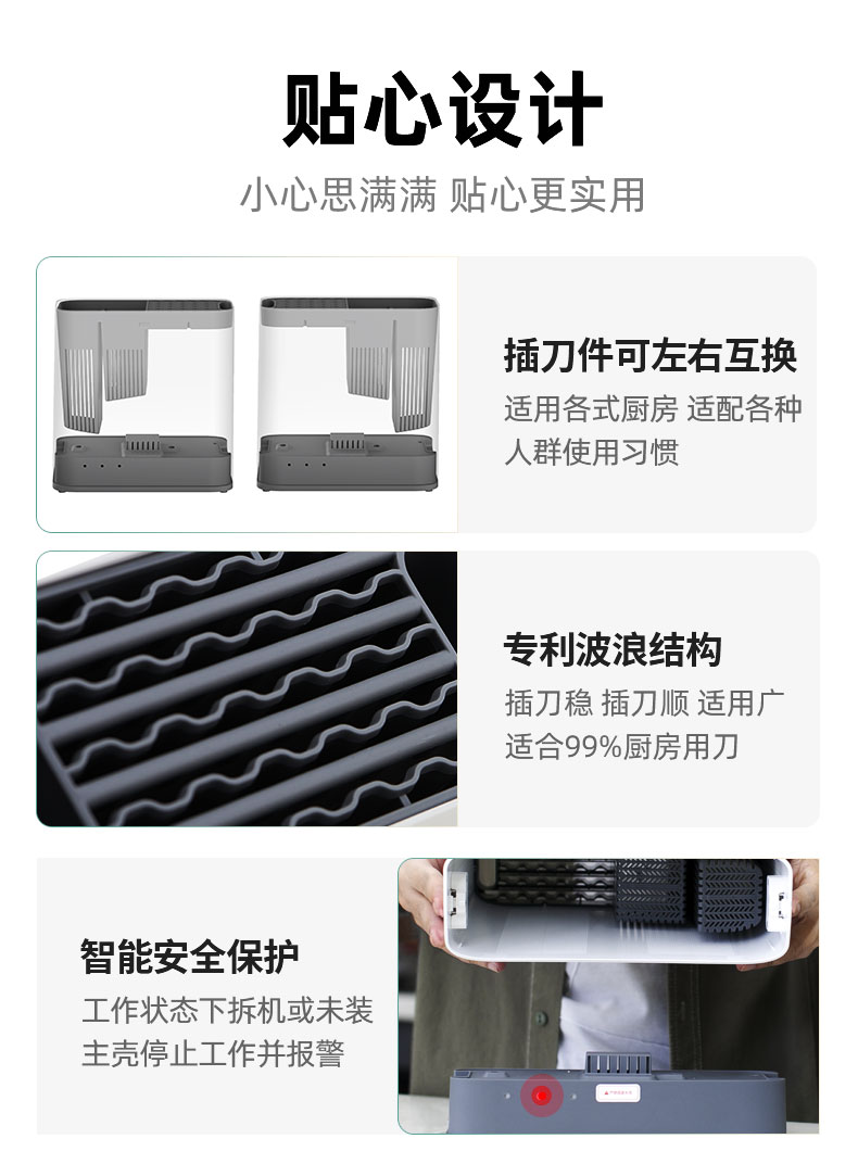 大部分家庭用的都是木质的刀架,当时心里就在想,木菜板用久了都发霉,刀架里面不知道有多脏,还没法清洁。这种可消毒的刀架,卫生多了。