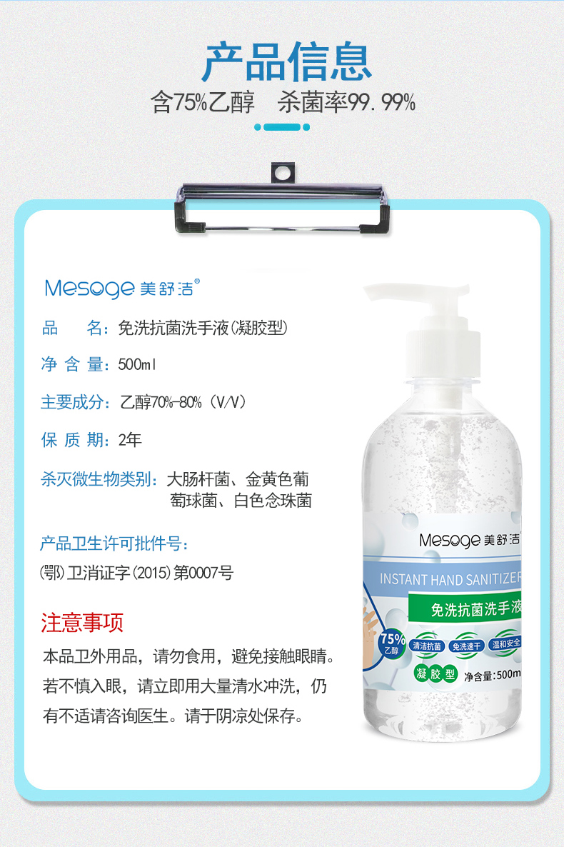 这款美舒洁的消毒凝胶使用的是消字号标准,经过卫计委备案的正统消毒产品,标准要高于日化类的产品,主要成分是75%乙醇,能有效杀灭包含新冠病毒内的多种细菌,使用后30分钟仍能保持99.9%的杀菌率,凝胶型设计,10秒快速洁净,免洗速干不沾手,使用后也不容易出现皮肤干燥的情况。
