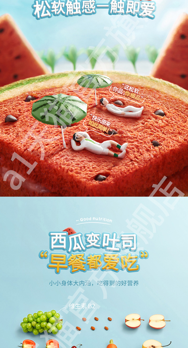 这款A1 爱逸 西瓜吐司面包,规格: 480g,优选新西兰进口奶粉、天然海藻糖,甜度仅为普通蔗糖的45%,天然果色,浓浓瓜味,添加维生素B1/B2/B3,低温发酵,味浓软润,西瓜沙拉夹心,口口满酱顺滑,还用巧克力制成西瓜子,镶嵌其中,兼具颜值与美味于一身。