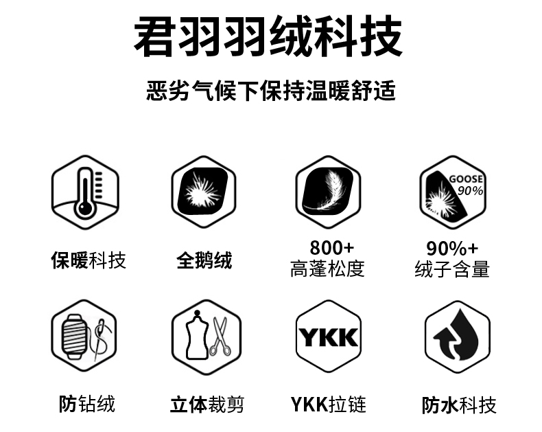 「鹅绒」800蓬鹅绒成本约是普通鸭绒的10倍,没有鸭毛的腥味,保暖效果更好:「210克 800蓬鹅绒」≈「272克 389蓬普通鹅绒」≈「388克普通鸭绒」。