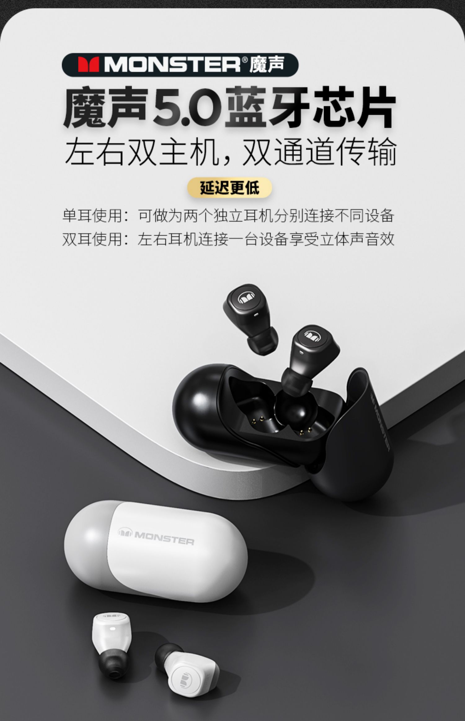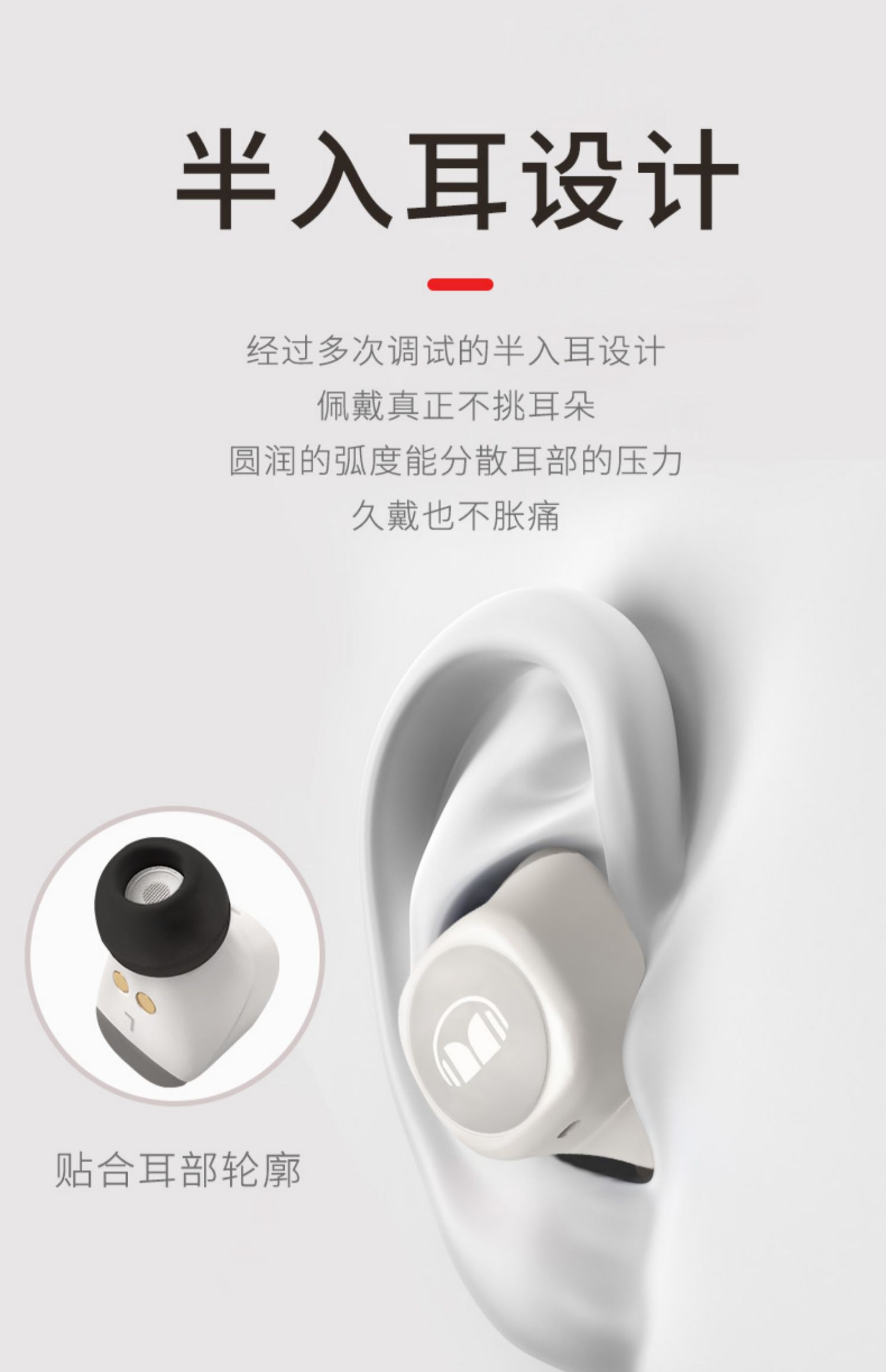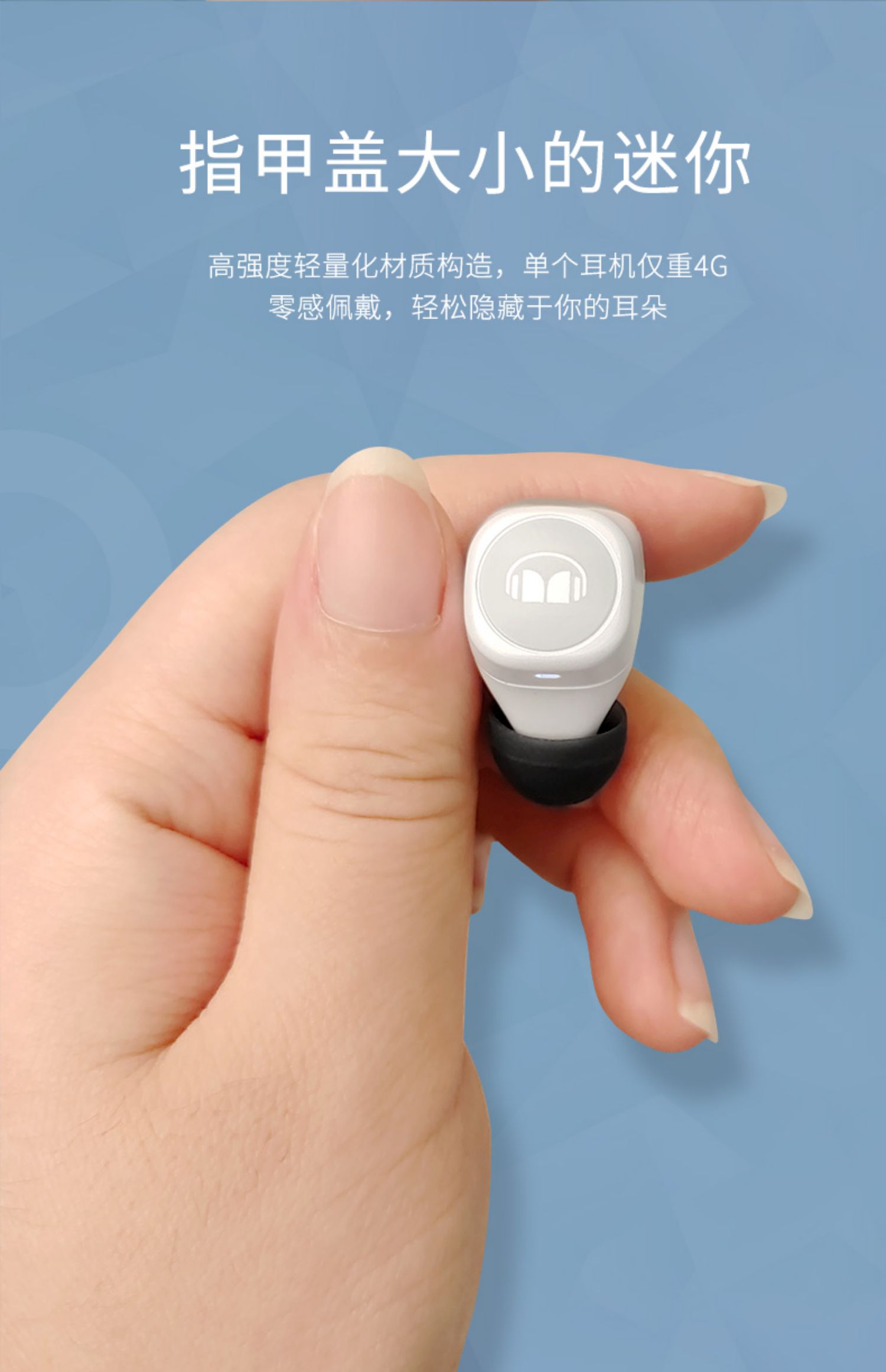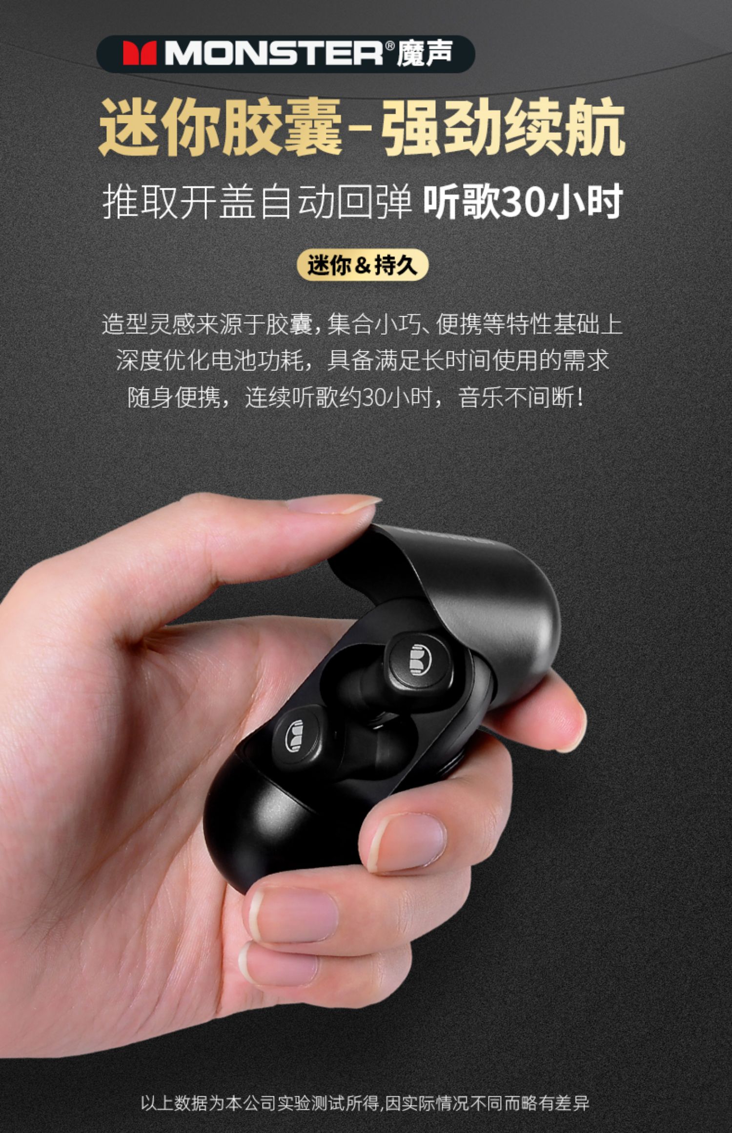 C20是魔声近期推出来的一款真无线新品,戴上非常小巧隐形。推拉胶囊式外壳,连接处使用高弹纽带,单手即可打开,用后自动回弹,蓝牙5.0高版本芯片,支持十米连接。