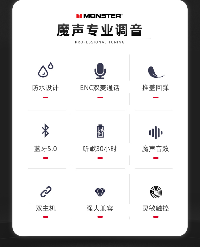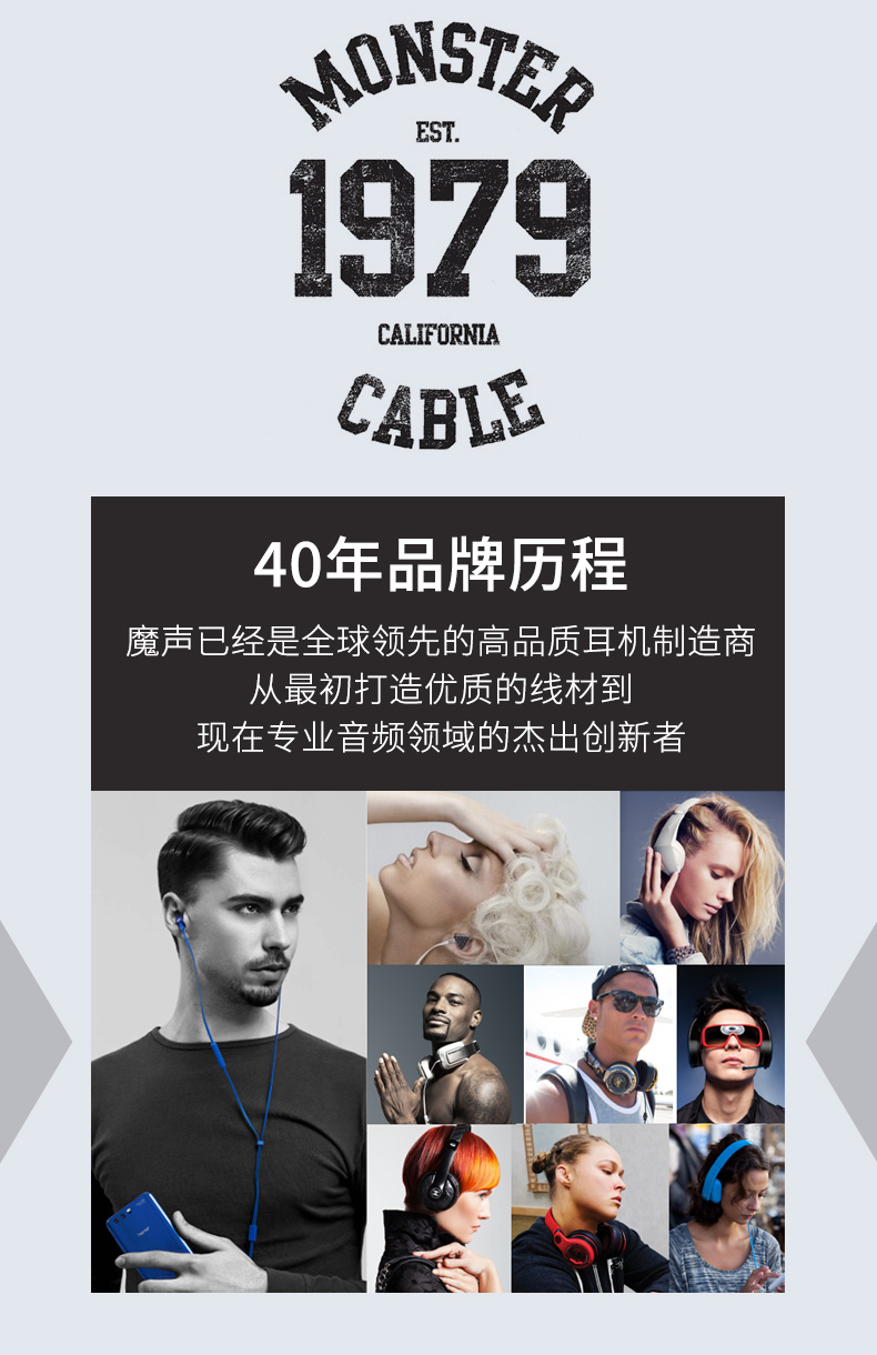 魔声(Monster),又叫怪兽,线材(Monster Cable)是世界上最早开发出高能影音器材连线的品牌,,同时也是iPod,iPhone和iPad配件和专业音频领域的杰出创新者。由美籍华裔李美圣(Mr.Noel Lee)先生于1979年创立,曾任美国国家劳伦斯实验室激光合成设计工程师,后成为巡演音乐人,发明或联合发明了逾250项美国及世界专利。