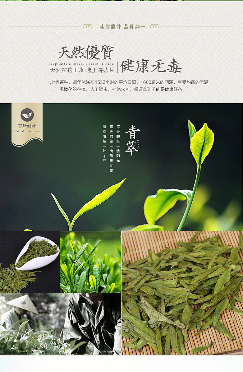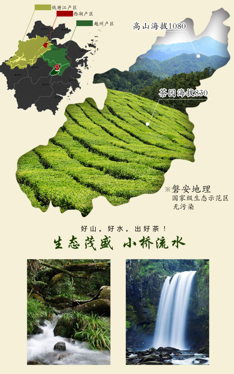 产自中国名茶之乡——磐安,秉承纯天然绿色理念,茶树从不使用化学肥料杀虫剂农药,采用纯手工炒制,采用两层以上包装,独立密封,锡箔内集散,防潮出色,紧锁茶香,茶汤明亮清澈,口感清新,清香飘逸,回味甘醇,醇厚回甘。
